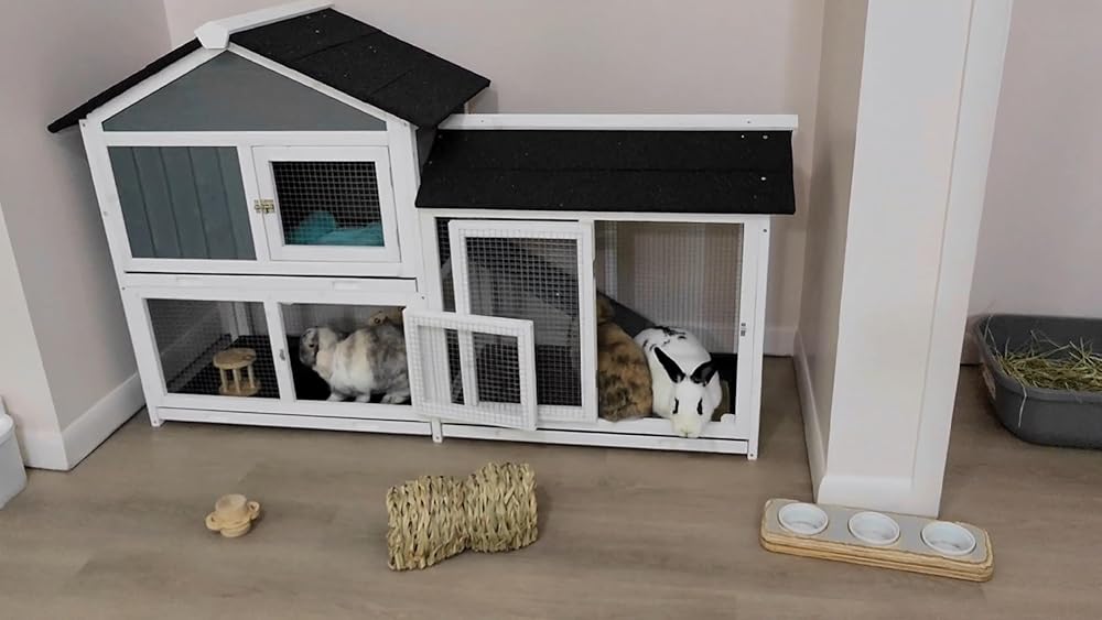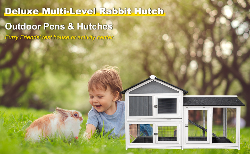 【مساحة واسعة】تتميز كابينة الضيوف الفاخرة هذه بتصميم متعدد المستويات، وهي مثالية للاستخدام الداخلي والخارجي. توفر مساحة واسعة للأرانب والخنازير الغينية وبط كول والقنافذ والحيوانات الصغيرة الأخرى للعب والتمرين.