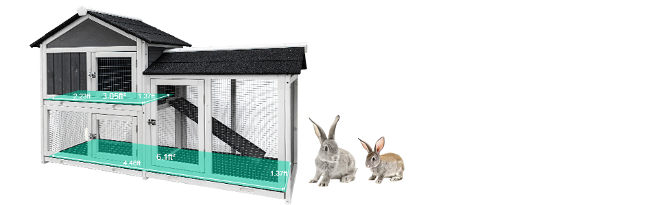 【المقاس والتجميع】يبلغ مقاسه 56.7 انش طول × 20.9 انش عرض × 37.2 انش ارتفاع، يمكن لهذا القفص أن يناسب 1-3 أرانب بشكل مريح. مع دليل محدد يحدد بوضوح نوع كل برغي وملحق، يمكن تجميعه بسهولة وسرعة بواسطة شخصين بالغين.