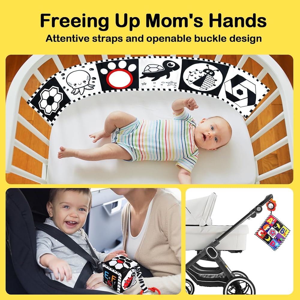 👶هدية مثالية لألعاب وقت الاستلقاء على البطن: هذه المجموعة الجذابة من ألعاب الأطفال باللونين الأبيض والأسود من عمر 0 إلى 3 أشهر هي الهدية المثالية لحديثي الولادة والرضع. هدفنا هو دعم نمو طفلك مع ضمان سلامته ورضاه. في حالة وجود أي مخاوف بشأن منتجنا، يرجى عدم التردد في الاتصال بنا. ملحوظة: نوصي بغسل الألعاب قبل الاستخدام.
