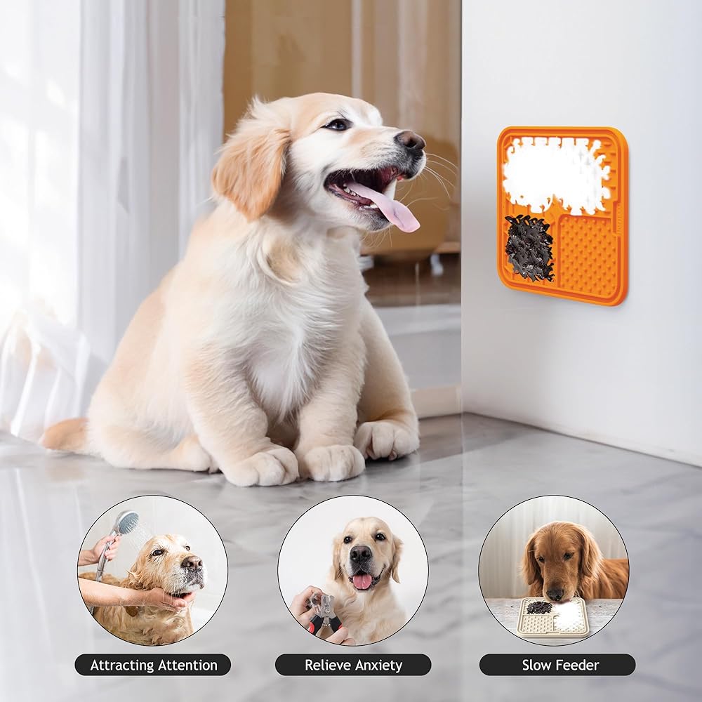 【تصميم شفط قوي】---حصيرة لعق الكلاب مع 25 كوب شفط كبير الحجم، قوة الشفط أقوى وليس من السهل أن تسقط. يمكن تثبيتها بقوة على الأسطح الملساء مثل البلاط والمعادن والزجاج والرخام. غير مناسب لطلاء الجدران وورق الحائط والأسطح الناعمة أو غير المستوية الأخرى.