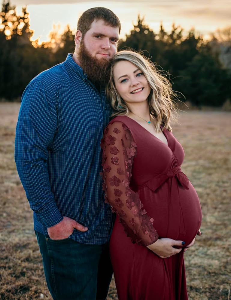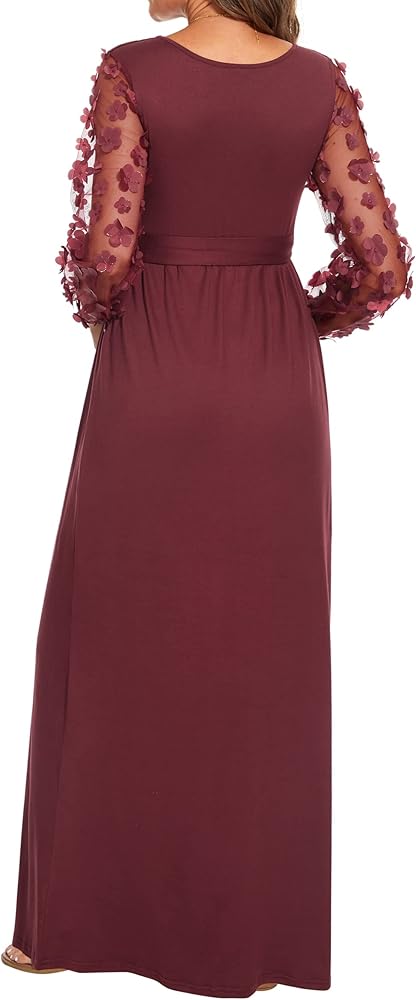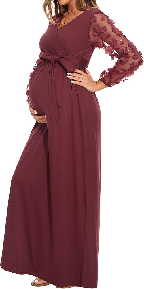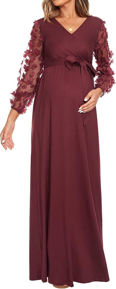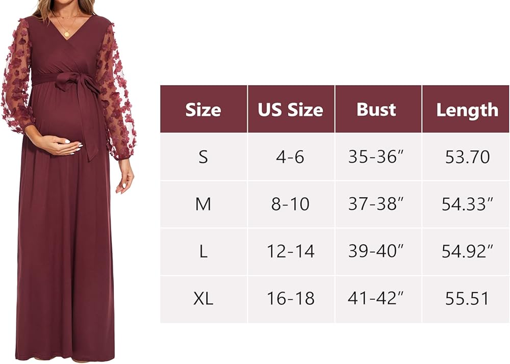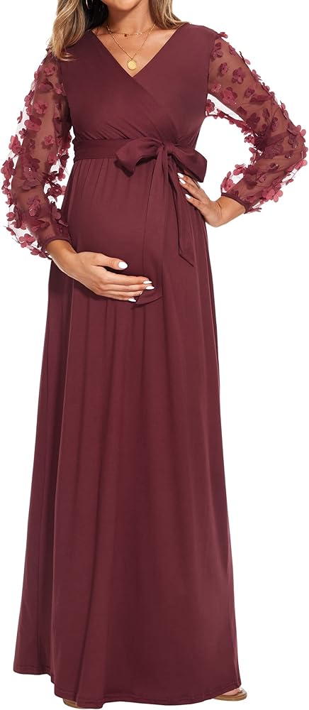 - أكمام منتفخة بالزهور - فستان حمل شبكي بأكمام طويلة منتفخة بالزهور. فستان ماكسي للأمومة. توفر تفاصيل الخصر المكشكشة لفستان الحمل هذا مساحة كافية لنمو بطن الطفل.