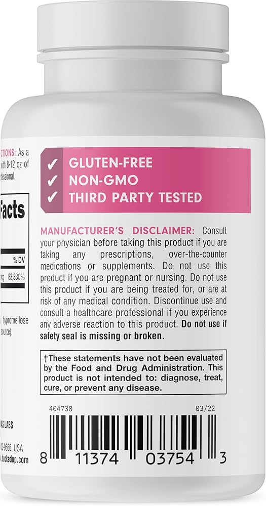 جزء من خط المكملات الغذائية الموثوق به Bucked Up Essentials: مصنوع في منشأة مسجلة لدى إدارة الغذاء والدواء الأمريكية ومتوافقة مع ممارسات التصنيع الجيدة (GMP).