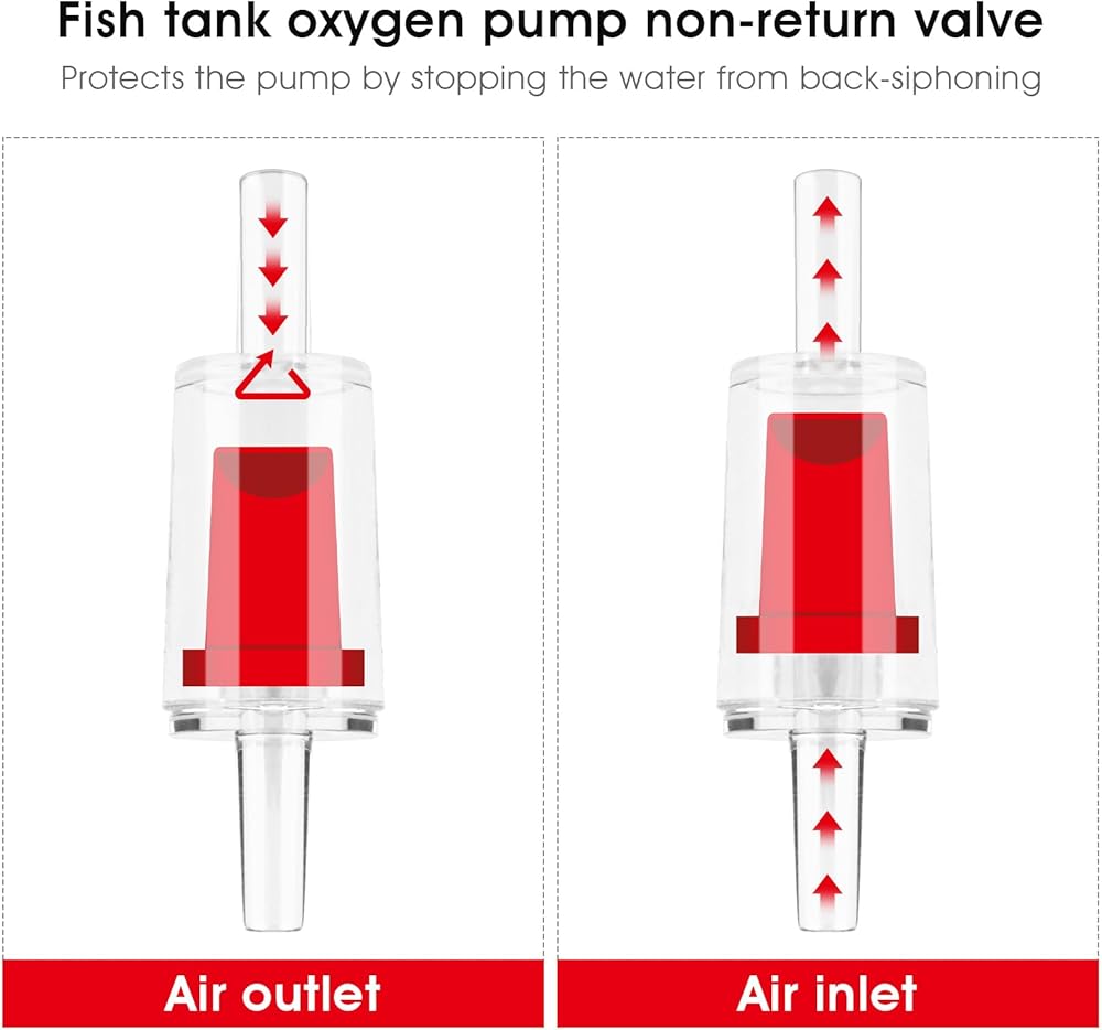 【Durable Material】Crafted from high-quality and durable plastic, our oxygen pump check valve ensures a tight fit to your hose, eliminating any potential leakage. Its exceptional durability enables long-term use without generating disruptive noises, creating a soothing and serene environment for you and your aquatic companions.