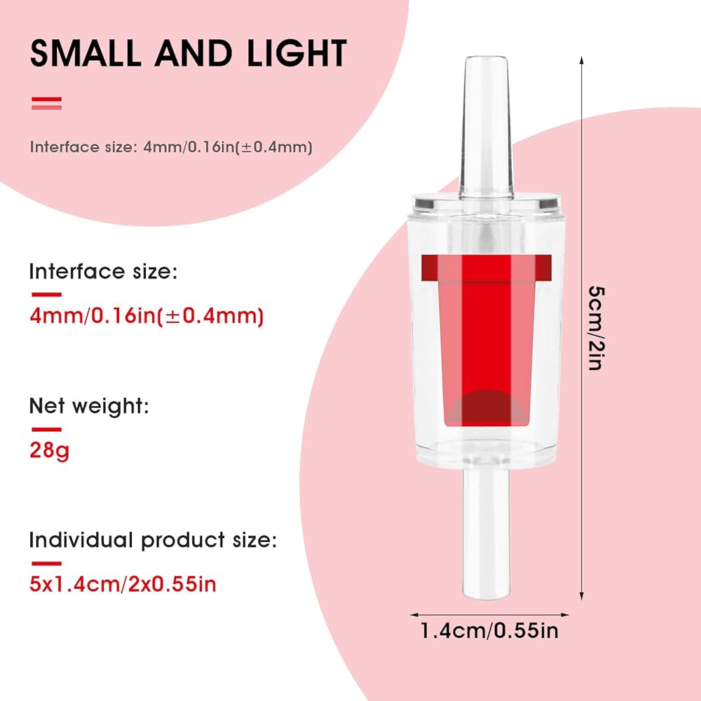 【Designed for Oxygen Pumps】The air pump check valves have a size of 5x1.4cm/2x0.55in, with air holes that have a diameter of 0.16in/4mm. They are suitable for standard 3/16 inch airline hoses and all common aquarium air pumps. However, please note that they are NOT suitable for CO2 systems.
