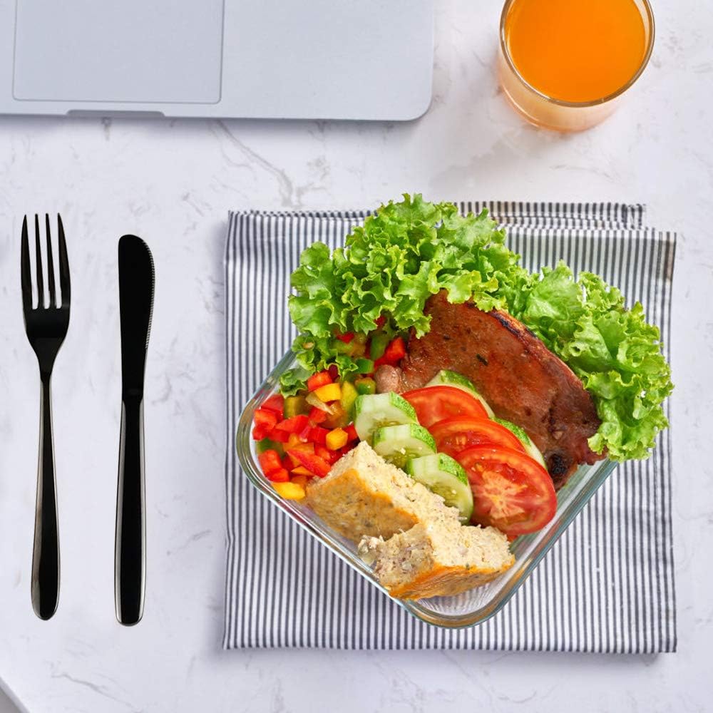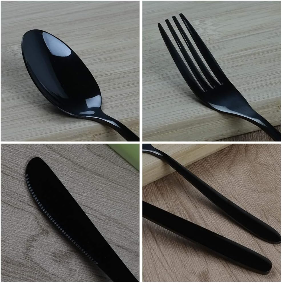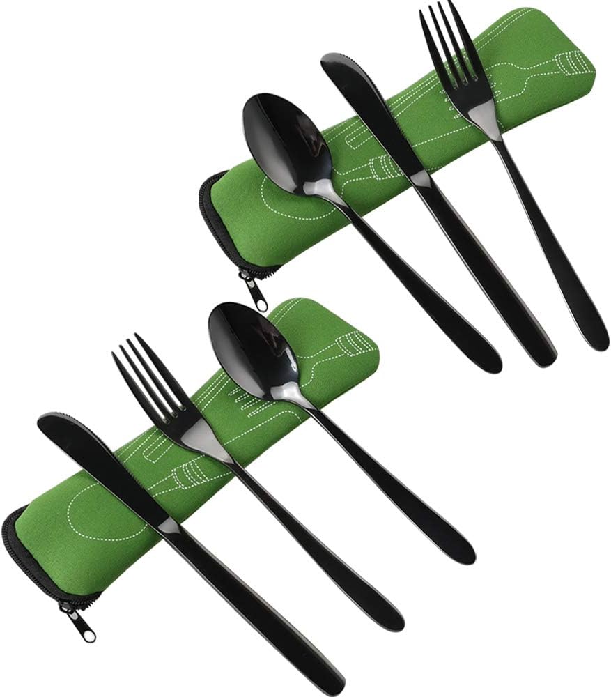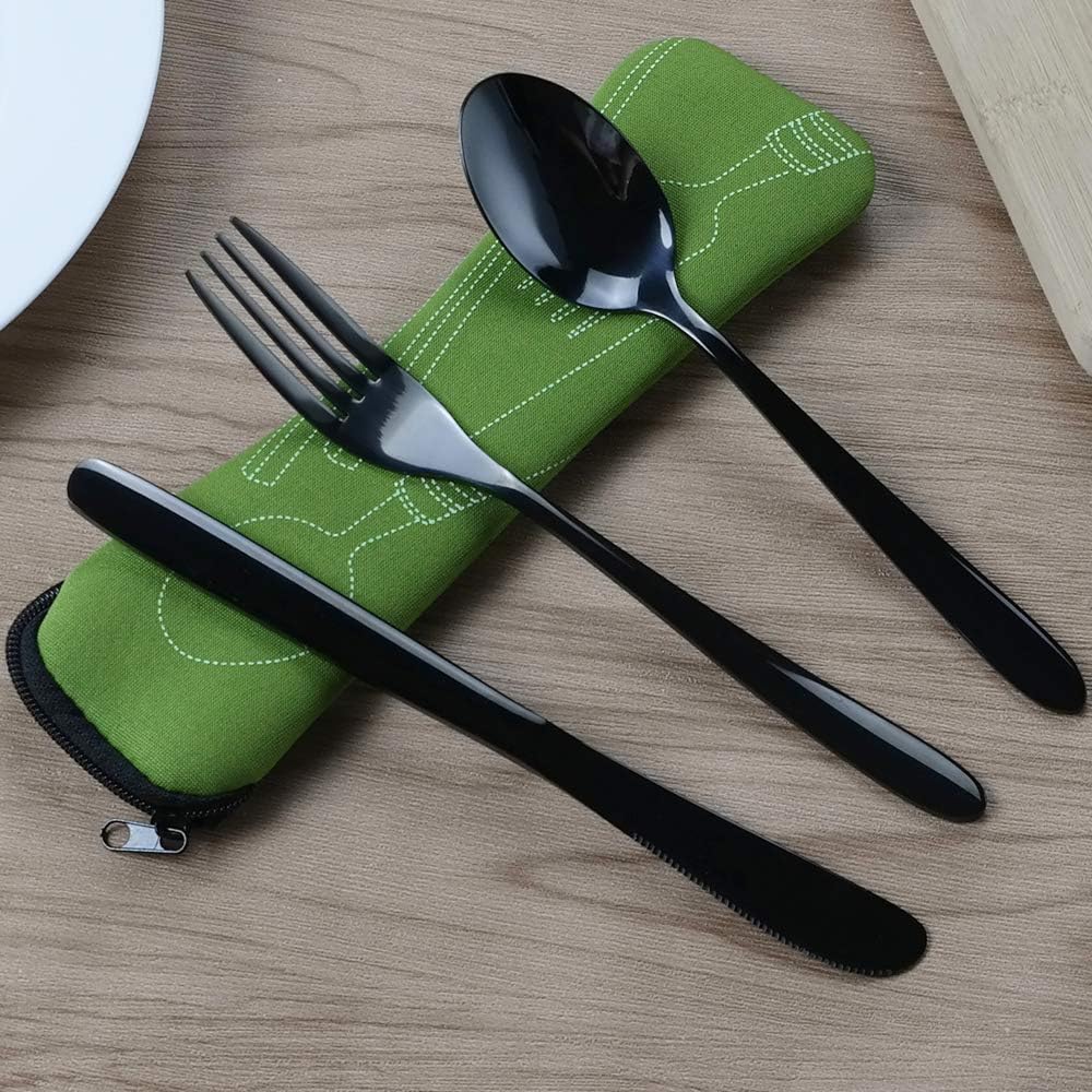 طقم أدوات سفرة من الفولاذ المقاوم للصدأ من Vababa 3 قطع أسود للسفر، أدوات مائدة للتخييم مع حقيبة حمل