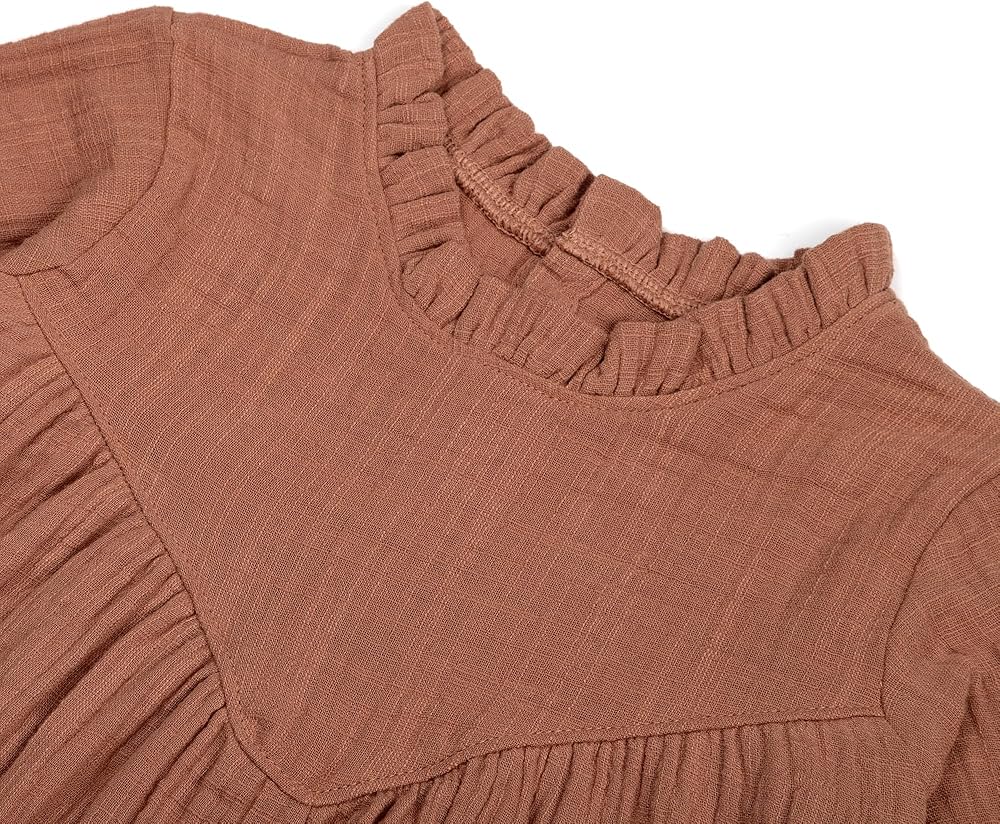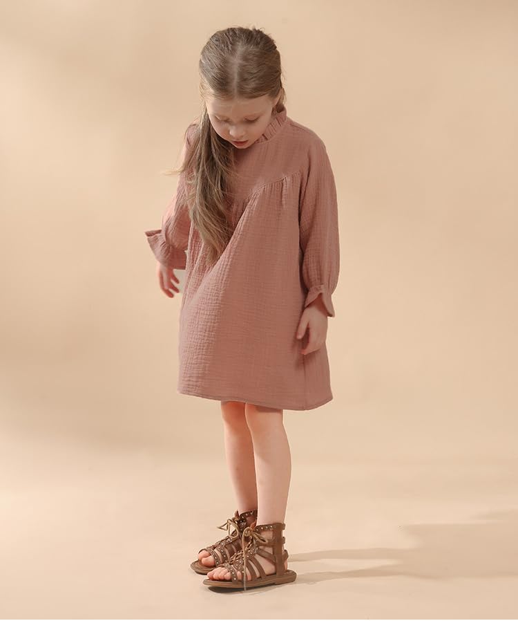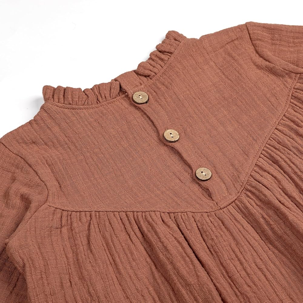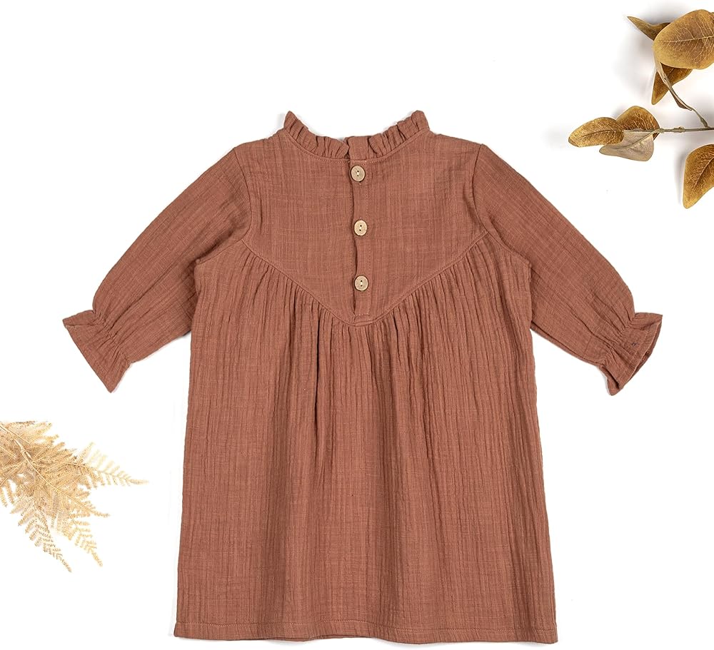 فستان للفتيات الصغيرات بأكمام طويلة من القطن والكتان، فساتين خريفية غير رسمية
