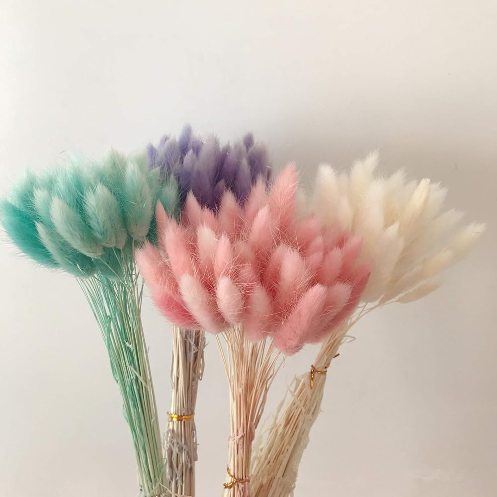 50 قطعة من JULAN لتزيين المنزل Lagurus Ovatus ذيل أرنب زهور مجففة، زهرة حقيقية، عشب مجفف بالزهور الأبدية، باقة زهور، دعامات للصور ديكور المنزل للحفلات والزفاف