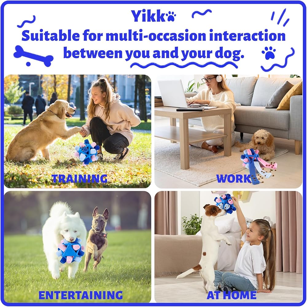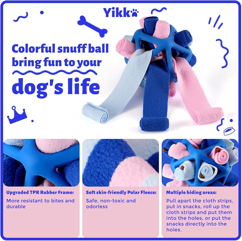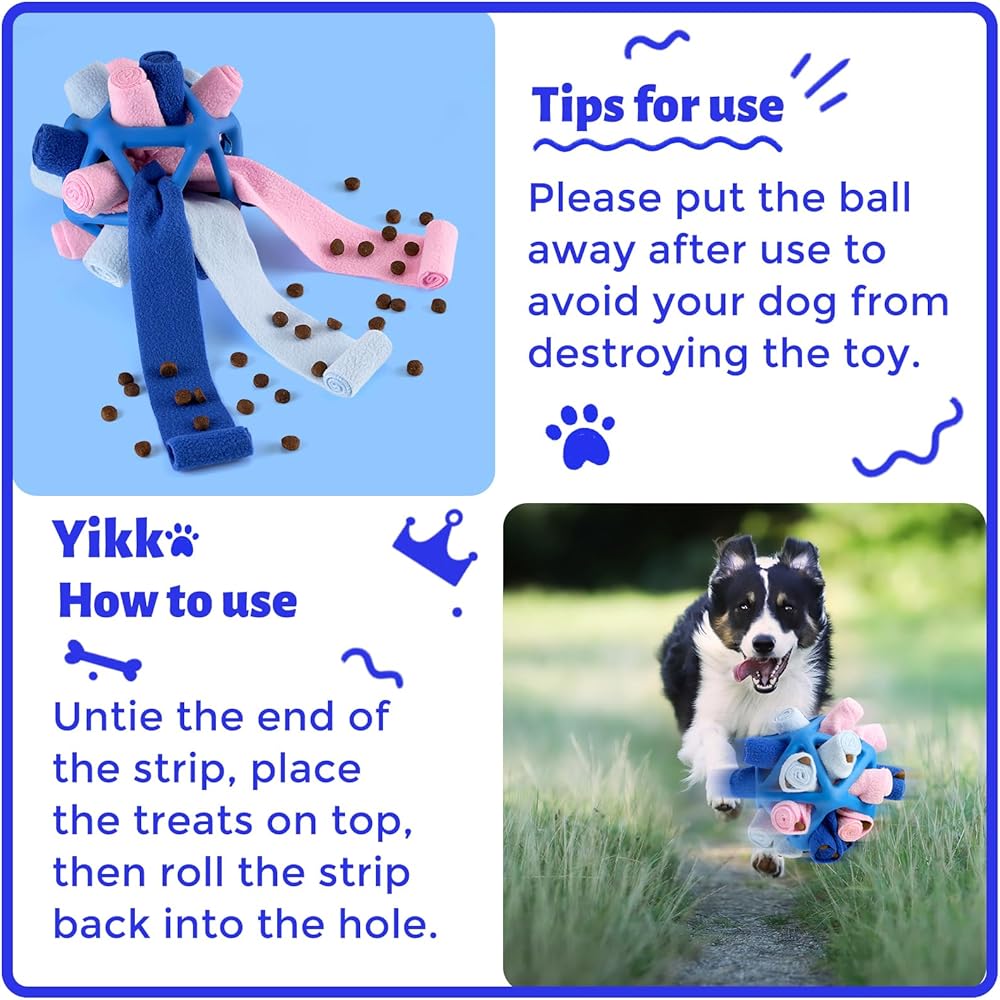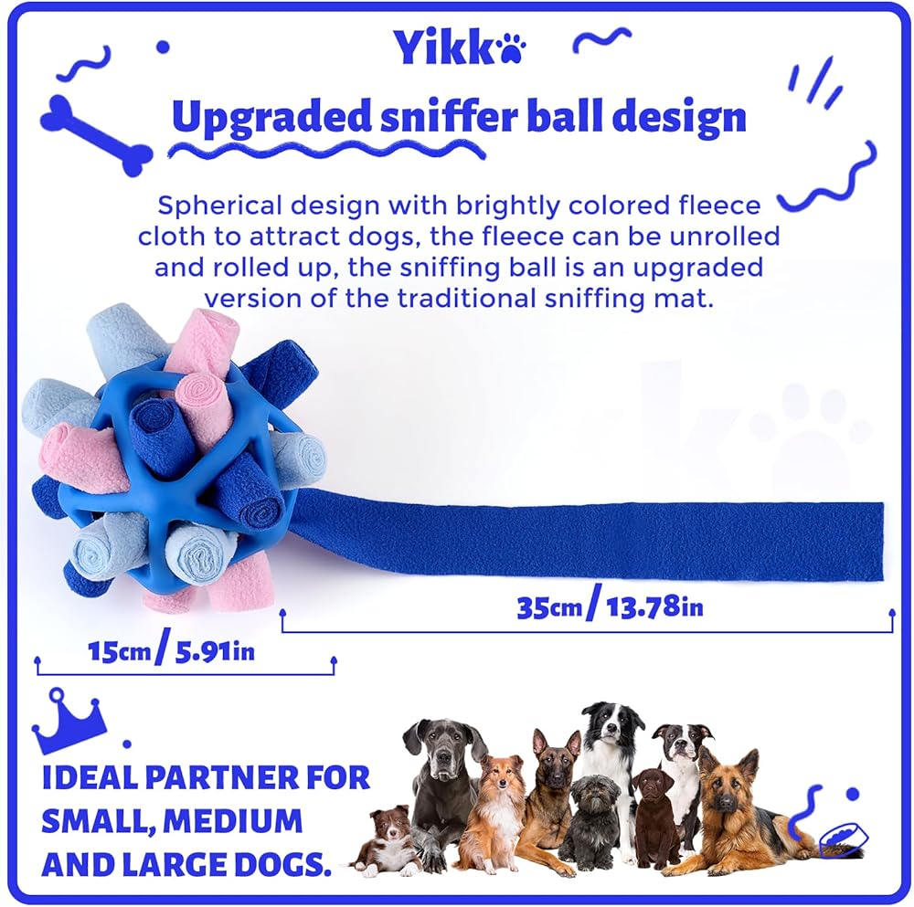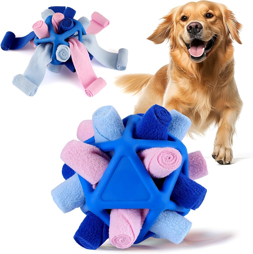 🐾【تصميم كرة سنفل مطورة】🐾 كرة سنافل هي نسخة مطورة من سجادة سنافل التقليدية. تصميم على شكل كرة مع صوف قطبي ملون لجذب الكلاب. تُفتح شرائح من القماش وتُلف من فتحات مثلثة لتحفيز اهتمام الكلاب بالشم.