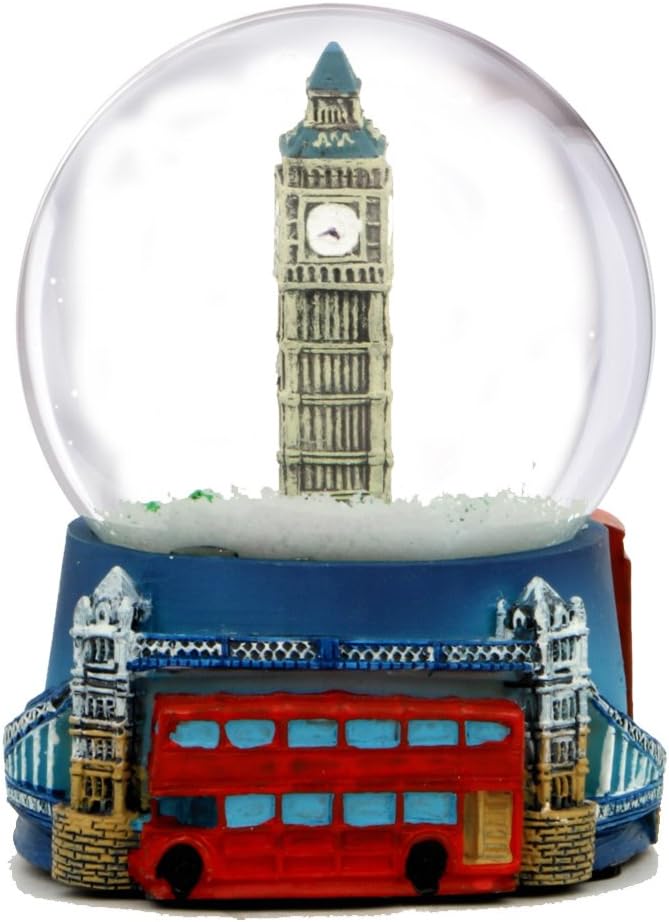 كرة ثلج صغيرة بطول 2.5 انش من لندن مع بيج بن ومعالم يونيون جاك وبيفيتر وكشك الهاتف وجسر برج لندن وحافلة ذات طابقين.