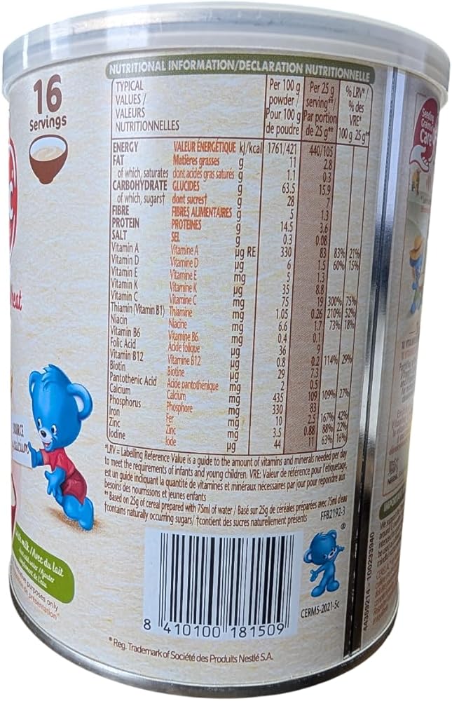 Developmental Nutrition PlanFrom birth to 3 years, your baby will undergo a period of rapid growth & development. nestle Developmental Nutrition Plan helps your baby grow through each unique stage, so that she/he always gets the right nutrition at the right stage of development.My 1st Cereal - Gentle First FoodFrom 7 Months - New TastesFrom 8 Months - Richer Tastes & TexturesFrom 12 Months - Strong FoundationGoodness of CerealsInfant cereal is the ideal foundation to a healthy and balanced diet. With Immunonutrients (Iron, Zinc, Vit A&C) & Bifidus BL Culture / Zinc, Iron, Vitamins A&CKey minerals and vitamins that participate in the good functioning of your baby's immune system. Vitamin CAn antioxidant that helps protect body cells and tissues