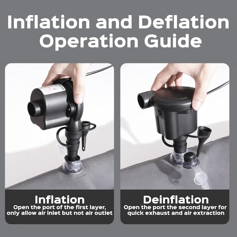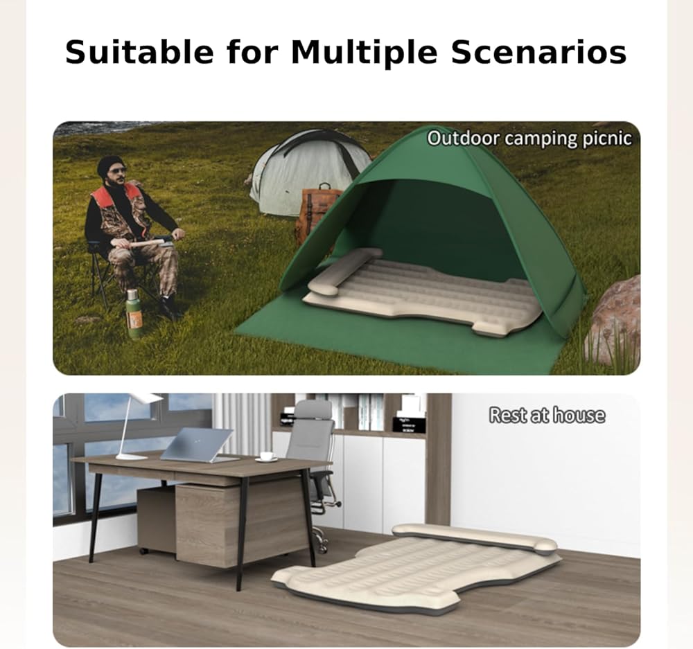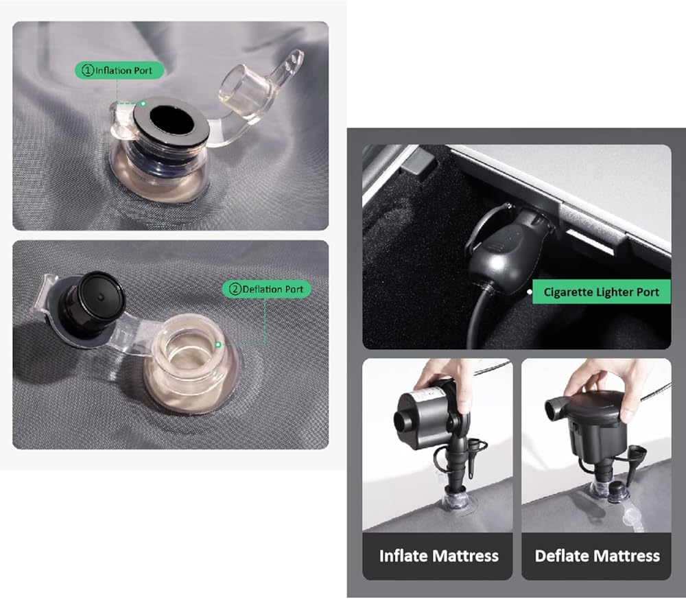 【Multi-Scene to Enjoy】:The mobile air pump power connector adopts the port of a 12V DC cigarette lighter, which can not only feel the leisure of the bedroom in your Model Y trunk but also enjoy it in many places, such as indoors, gardens, beaches, grassland outdoor camping, hiking, etc., excellent leisure, entertainment and sleeping accessories.
