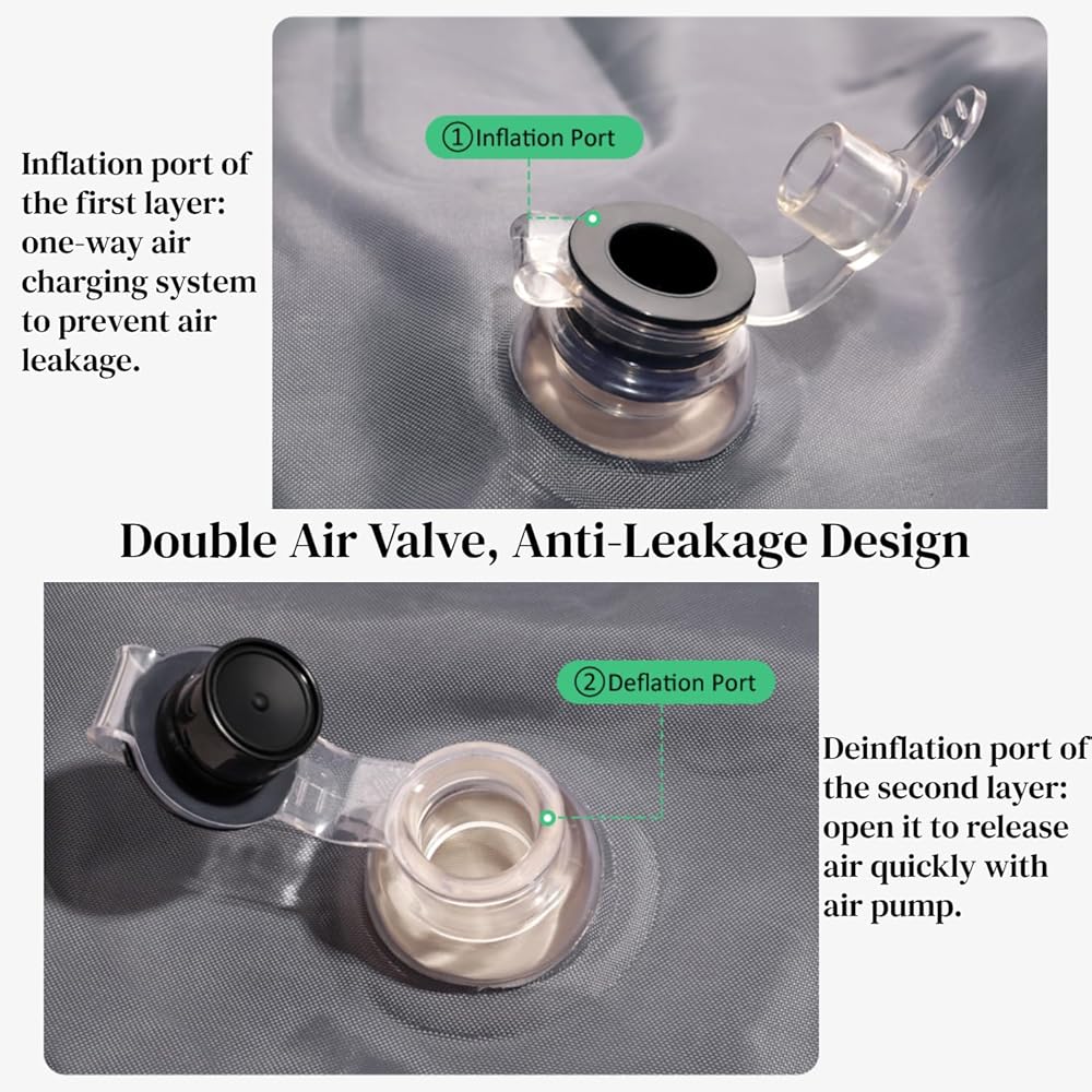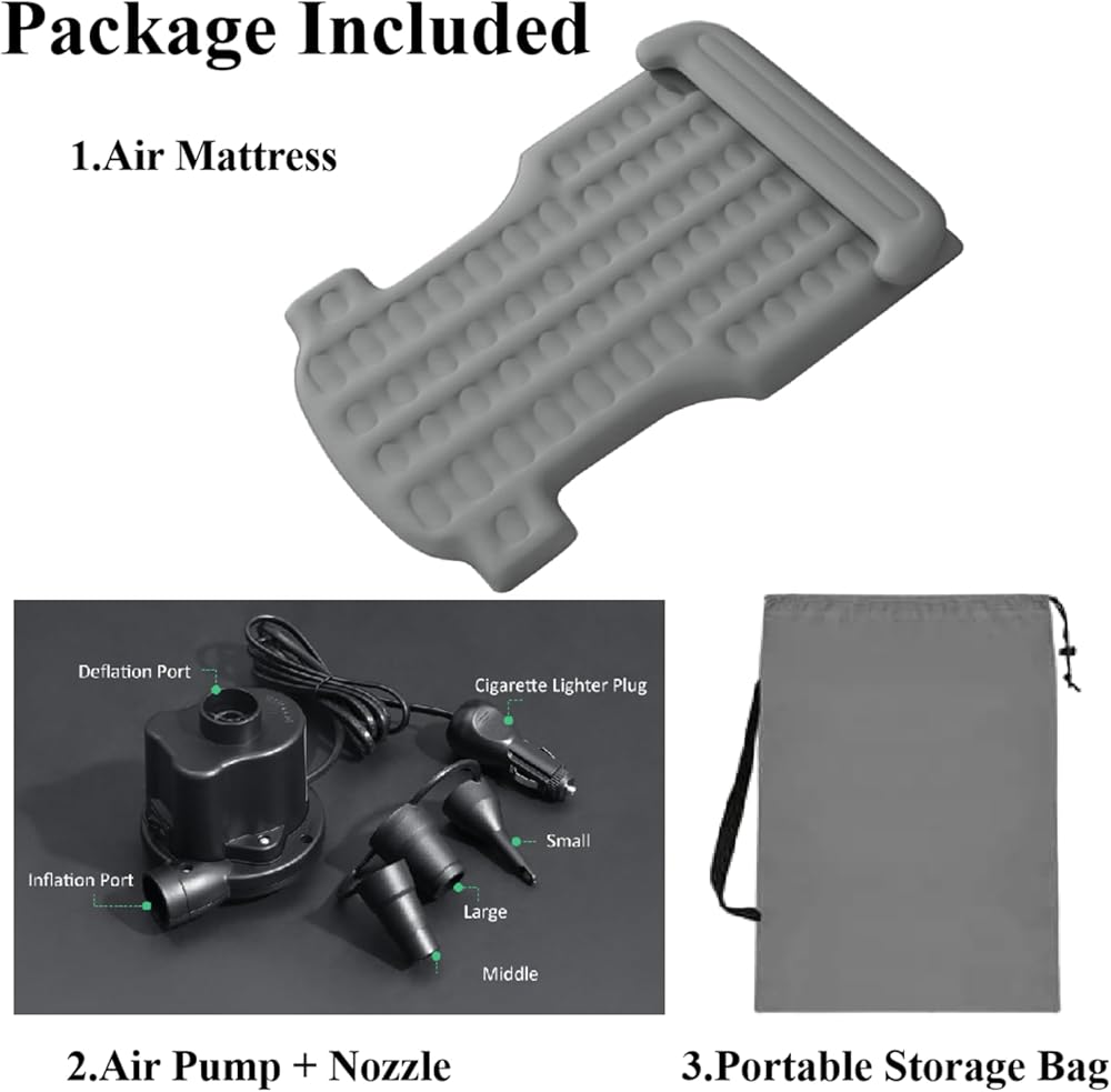 【Premium Skin-Friendly Materials】: The bottom is made of environmentally friendly PVC material, which is sturdy, durable, waterproof, and tear-resistant, and can effectively bond with the original car interior surface without damage. The upper layer is made of high-quality corduroy material, which is skin-friendly and silky. The touch of feathers makes you sleep more comfortably. The edges are tightly stitched and the double-sealing nozzles ensure no air leakage.
