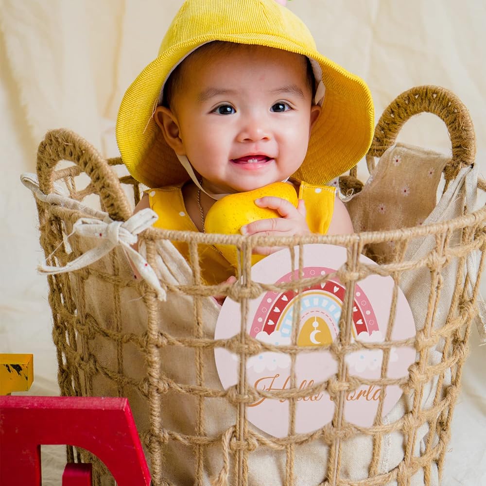 Products Include: You will receive a round newborn sign board, the diameter is 5.9inch/15cm, suitable for newborns to introduce themselves to the world.