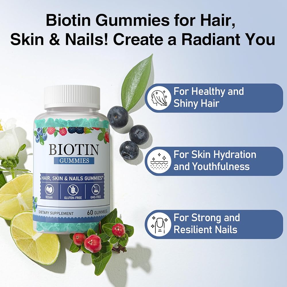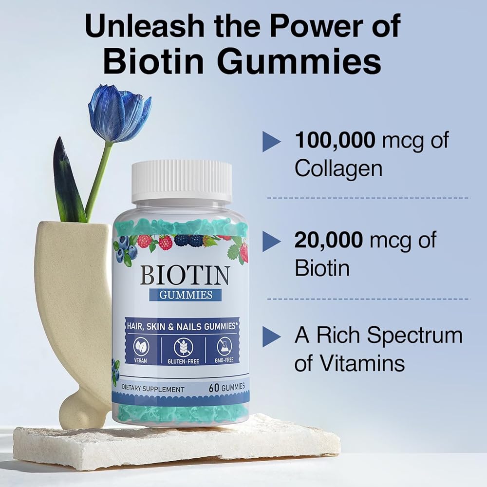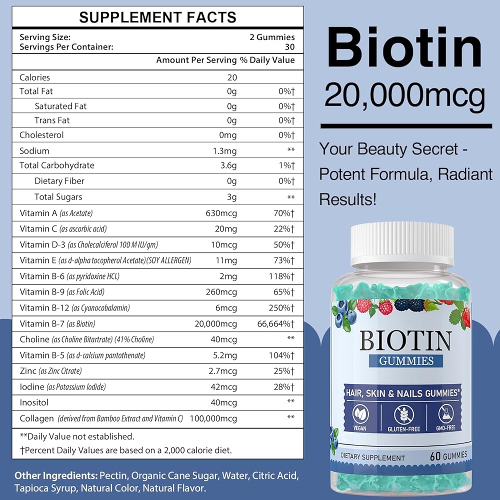 🌟بشرة متوهجة وصحة عامة: صمغ البيوتين والكولاجين الخاص بنا مع الزنك واليود. تم تصميم مكملات البيوتين لدينا لتحفيز إنتاج الكولاجين وتنمية البشرة الرقيقة والمتوهجة. هذه التركيبة الشاملة ليس فقط للجمال ولكنها تساهم أيضًا في الصحة العامة.