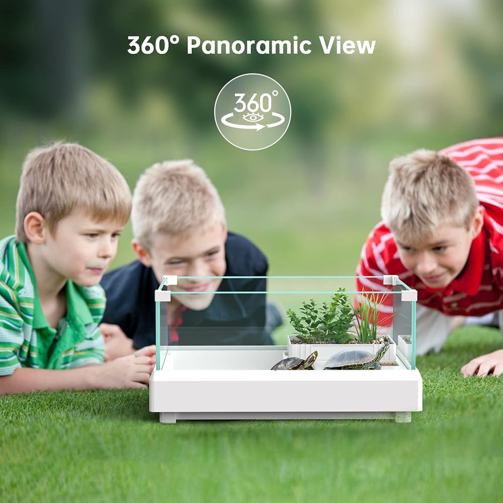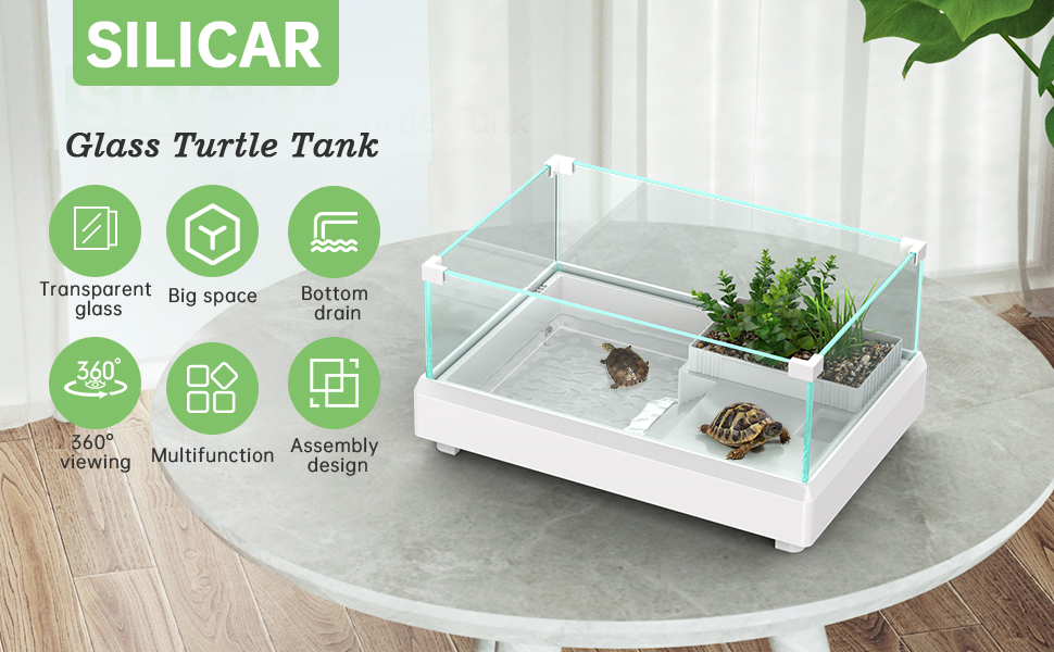 【تصميم زجاجي شفاف عالي الدقة】يأتي إعداد خزان السلحفاة هذا مع 4 قطع زجاج بارتفاع 4.37 بوصة من الزجاج الأبيض الفائق السميك 5 مم يوفر لك رؤية بانورامية 360 درجة، وهو رائع لمراقبة سلحفاة حيوانك الأليف. إنها نفاذية الضوء والزينة والصلابة أفضل مقارنة بالأكريليك. إذا كنت تريد خط رؤية واضحًا، فيمكنك دائمًا رؤية السلحفاة بغض النظر عن مكانها، فاختر خزان السلحفاة الزجاجي SILICAR الخاص بنا.