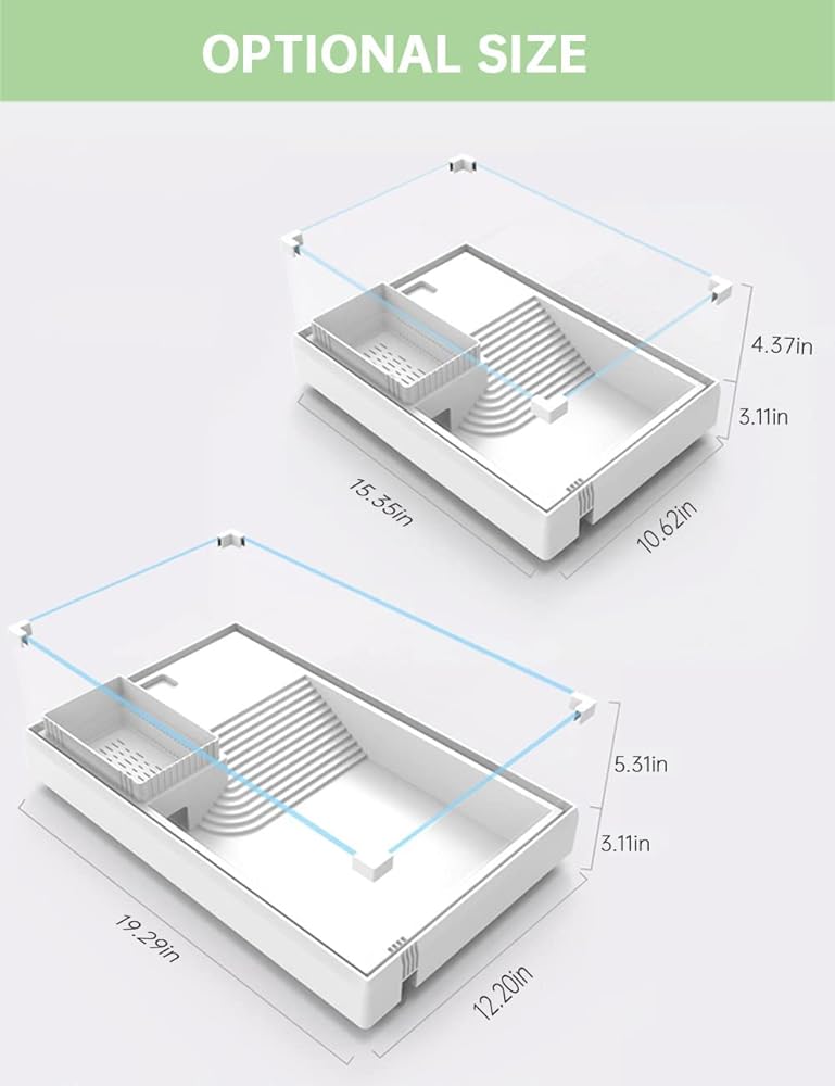 【استخدام واسع】الأبعاد: مقاس حوض السمك 15.35 بوصة × 10.62 بوصة × 7.48 بوصة طول، ويمكن إضافة ما يصل إلى 3000 مل من الماء (أعلى مستوى للمياه: 2.4 بوصة). موطن رائع للسلاحف الزواحف للسلاحف المائية، وسرطان البحر الناسك، والسلاحف الصغيرة، والسلاحف الصغيرة، وجراد البحر، والسلحفاة المنزلقة الحمراء، والعديد من المخلوقات الصغيرة الأخرى في حدود 2.5 سم. [نصيحة دافئة: يرجى التأكد أولاً مما إذا كان حجم الخزان مناسبًا لسلاحف حيوانك الأليف]