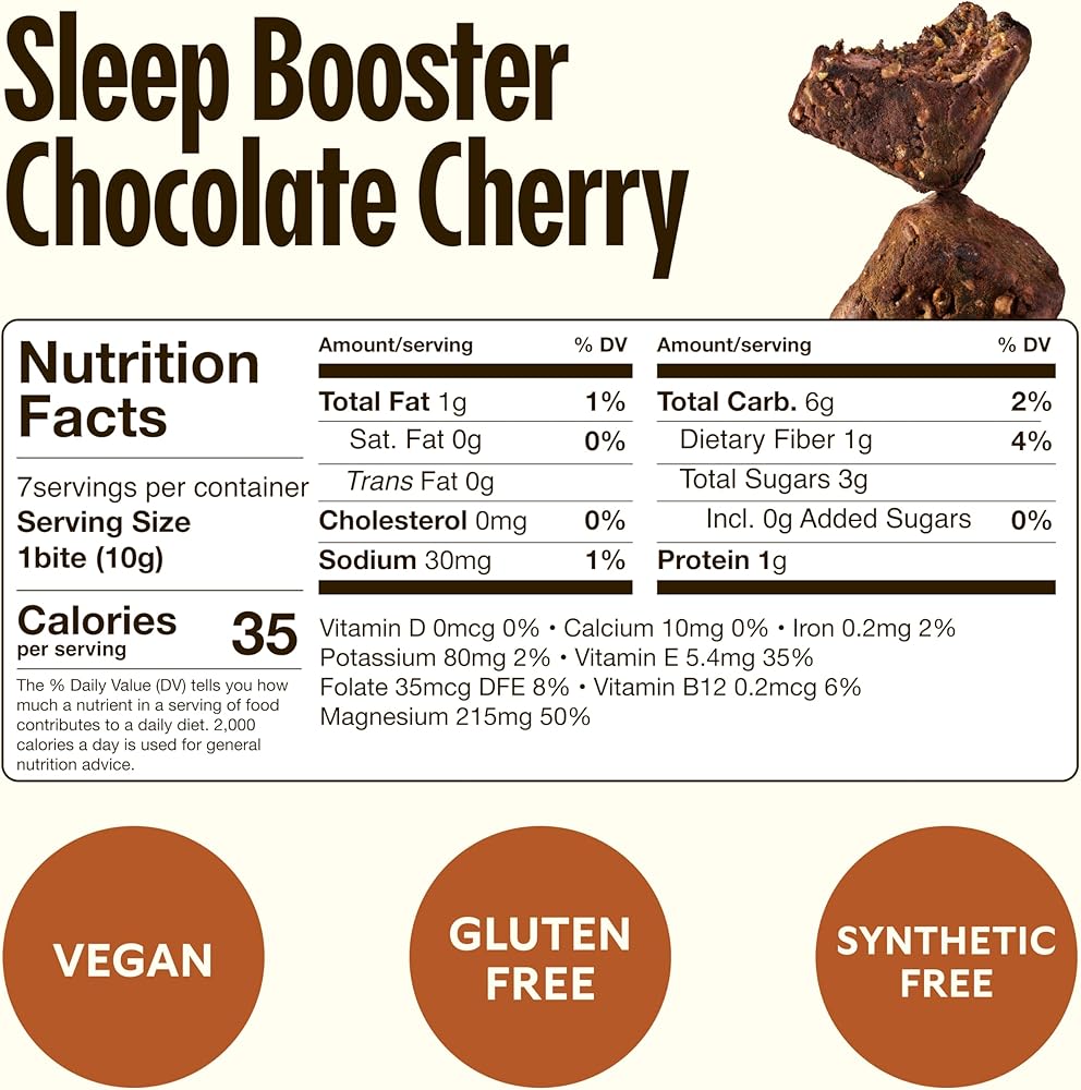 GEM Daily Sleep Booster شوكولاتة الكرز | 4 × 7 قطع | الدعم الشامل للنوم غير المعتاد | ل-ثيانين، مغنيسيوم، غابا، مستخلص جذر فاليريان | خالي من الغلوتين، خالي من الصويا، خالي من المنتجات الحيوانية
