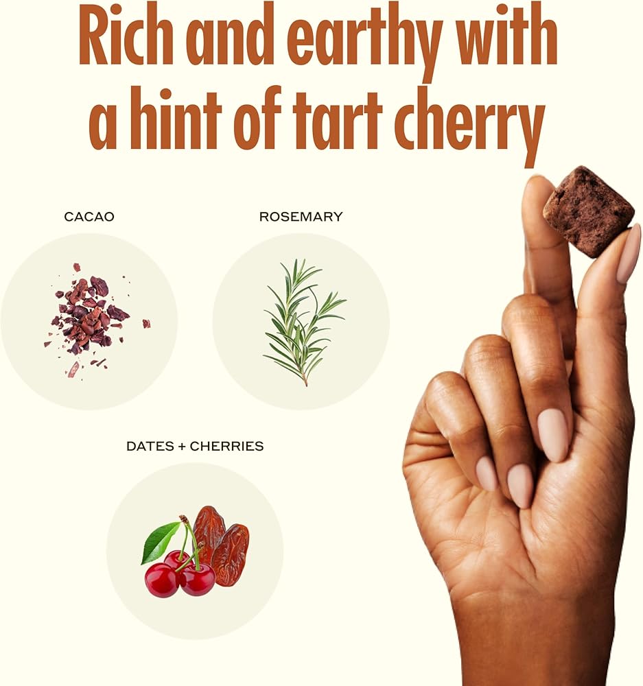 • تجربة لذيذة: نحن نعمل مع طهاة المعجنات في المنزل للتأكد من أن كل قضمة تستحق التذوق. إن تناول طعام لذيذ أكثر متعة من تناول حبة دواء عملاقة، أليس كذلك؟ غني وترابي مع لمسة من الكرز اللاذع