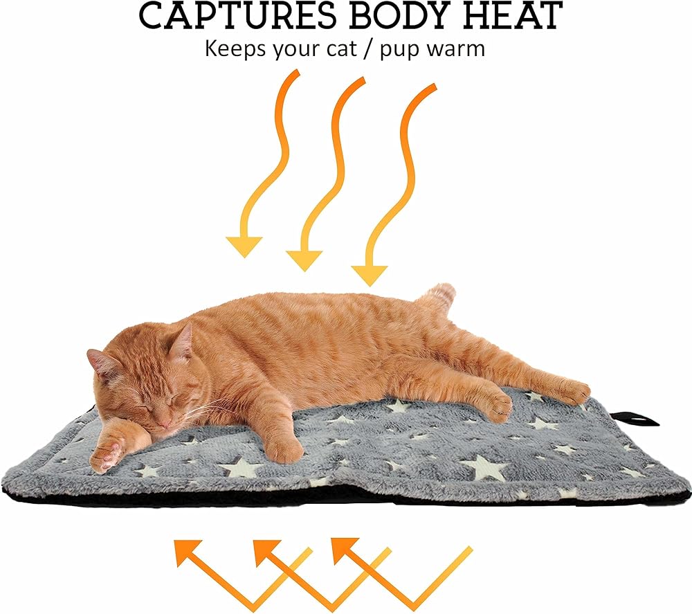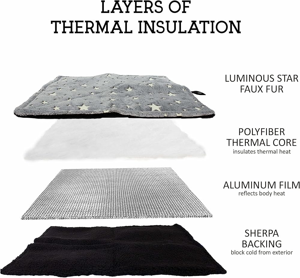 دافئ ومريح: تحتوي الوسادة الحرارية لسرير القطط الرقيق هذا على طبقة من طبقة المايلار التي تجعلها دافئة ذاتيًا. قلب حراري مريح من ألياف البوليستر يعزل حرارة الجسم ويحافظ على دفء حيوانك الأليف