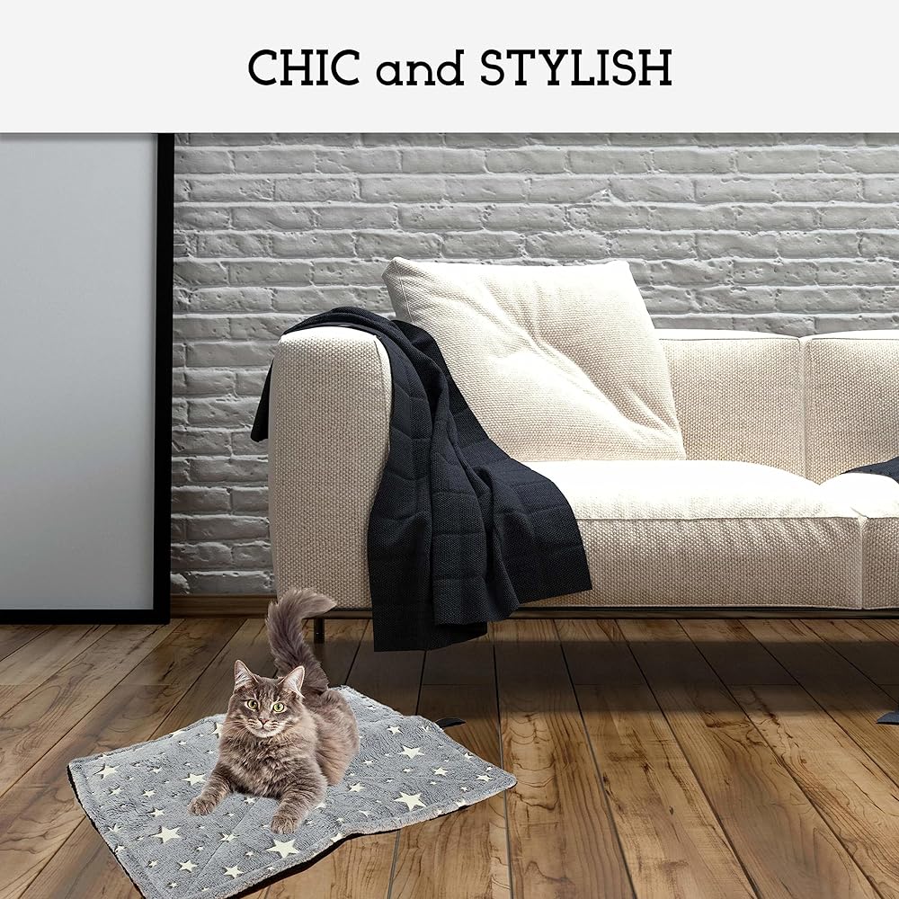 سرير القطط ذاتي التدفئة: يتميز سرير القطط الدافئ والمريح هذا بطبقة مايلر خفيفة الوزن تعكس حرارة جسم الحيوان الأليف مرة أخرى إلى الحيوان وظهر من قماش الشيربا لمنع البرد من الأرض.