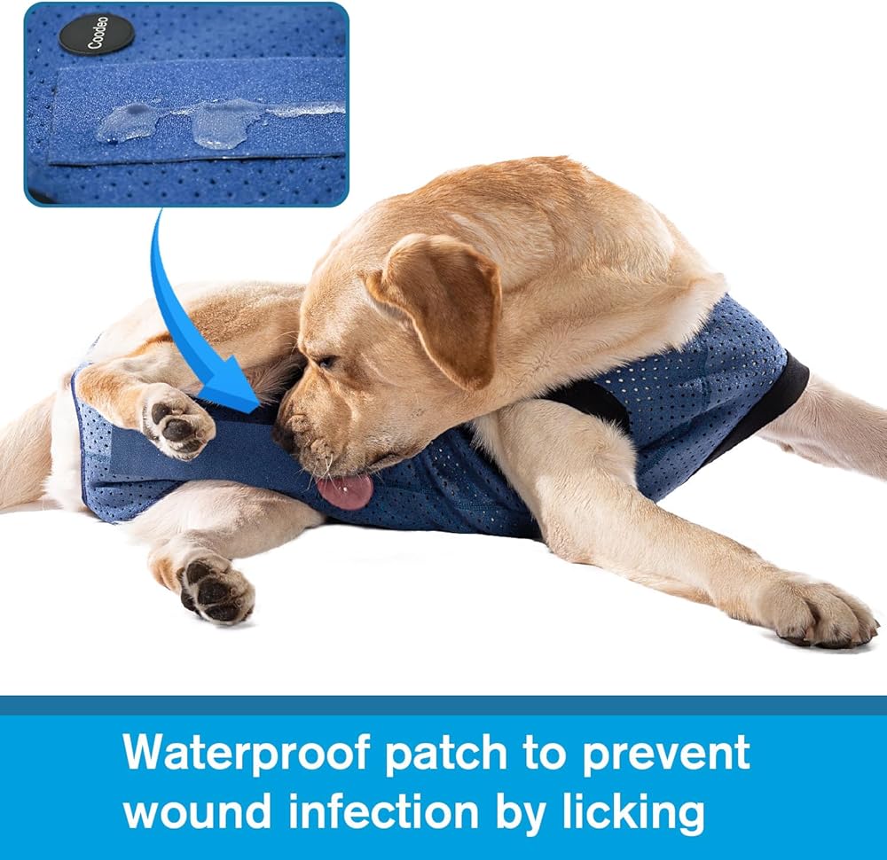 1. يوصي به الطبيب البيطري، لا يؤثر على الحياة الطبيعية للكلب، أفضل من الطوق الإليزابيثي. تحتوي العبوة على بدلة واحدة ورقعة مقاومة للماء.