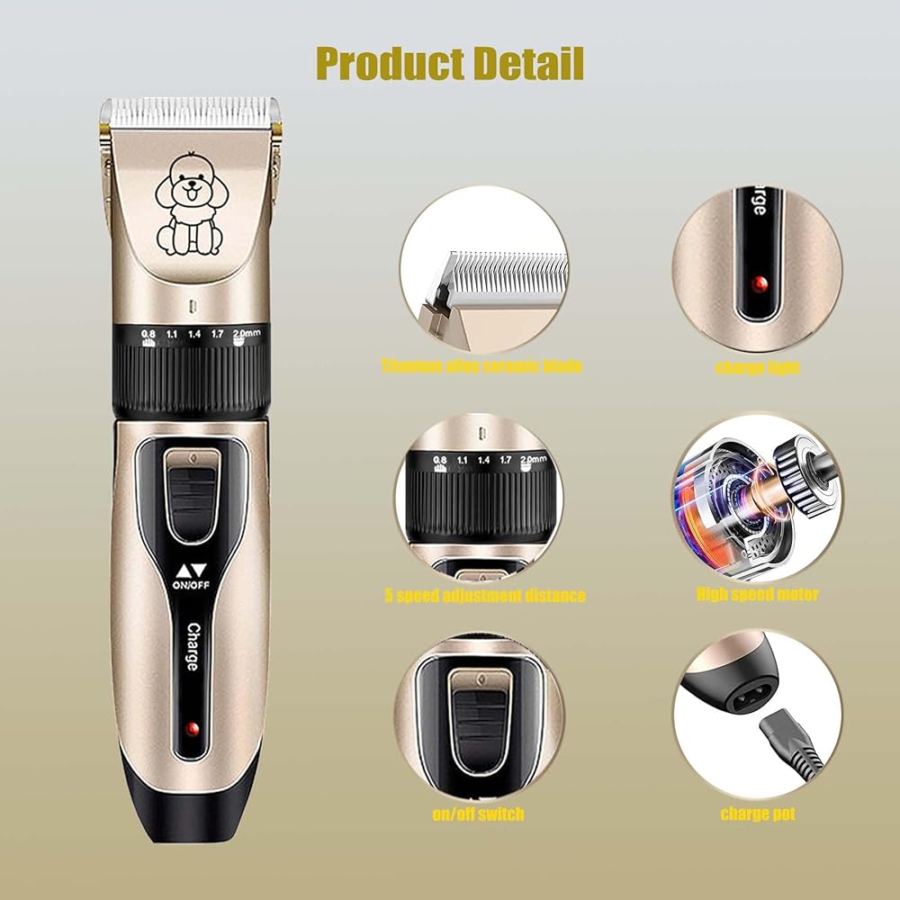 Built-in Batttery & Rechargeable: Rechargeable dog trimmer with built-in battery is very flexible. You will not annoyed by the cable not long enough and also can use when it's charging.