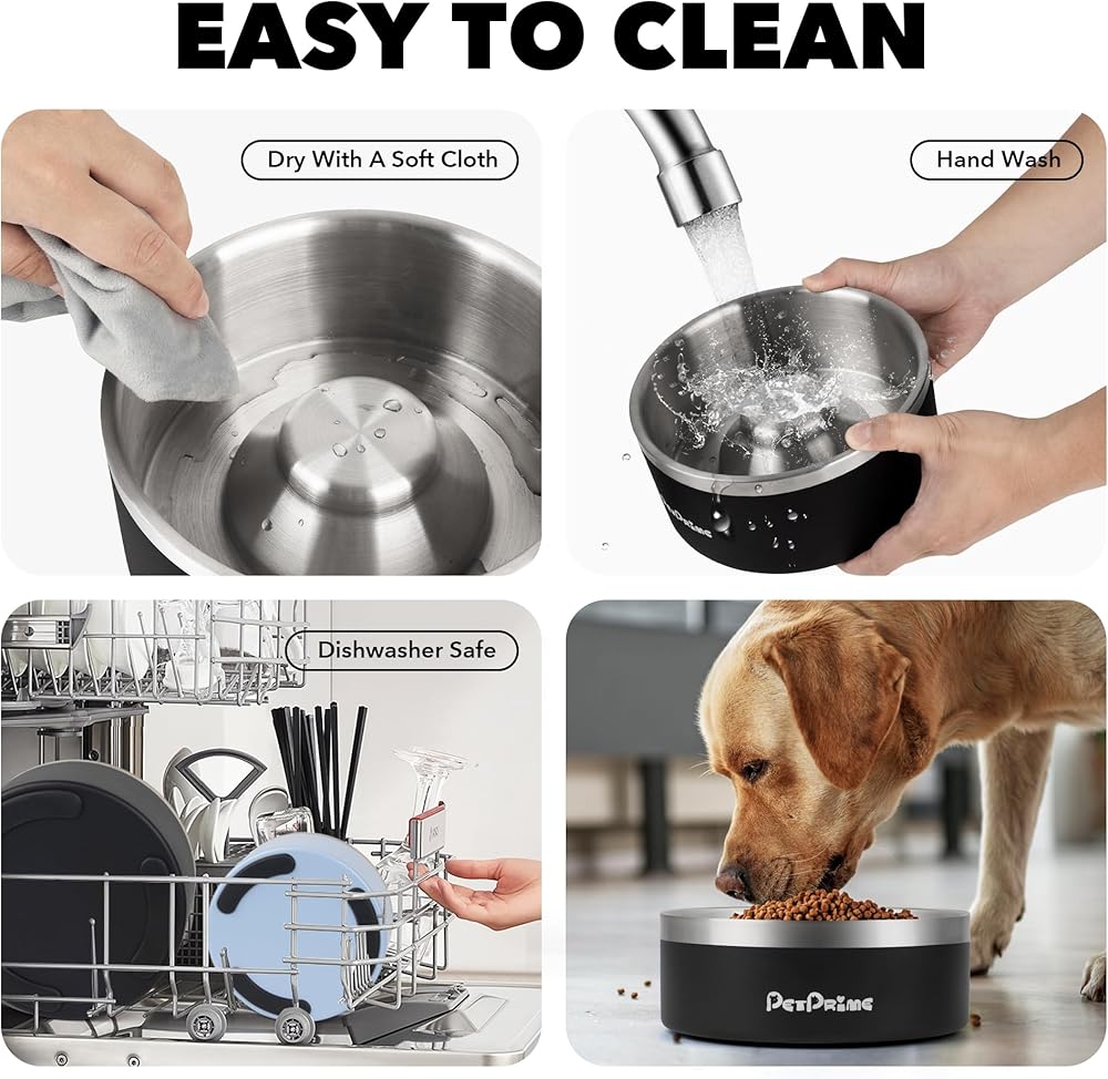 • يدوم لسنوات - مصنوع من الفولاذ المقاوم للصدأ بدرجة 304 للطعام، وعاء الكلاب الذي يأكل ببطء صحي وقوي ومتين وعديم الرائحة، ويتميز بأداء أفضل مقاوم للبقع والصدأ، مما يجعل وعاء التغذية البطيء للكلاب الخاص بنا مثاليًا لسنوات من الاستخدام.