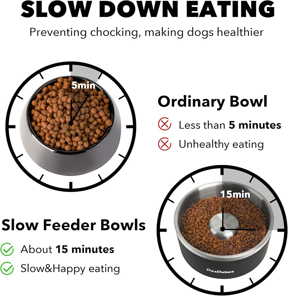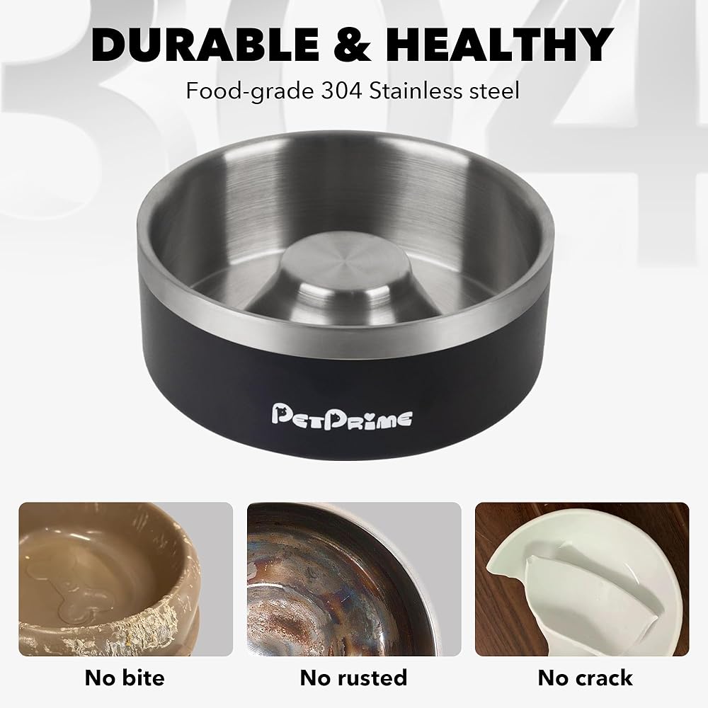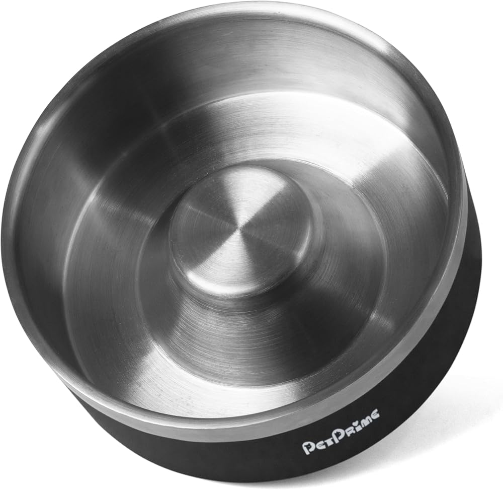 أوعية تغذية بطيئة من الفولاذ المقاوم للصدأ من بت برايم، مضادة للانزلاق ومضادة للانسكاب، معدنية بطيئة الأكل، وعاء مرجح للقطط، طبق مياه للحيوانات الأليفة، تغذية للكلاب الكبيرة والمتوسطة والصغيرة (30 أونصة/4 أكواب)