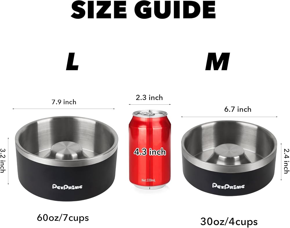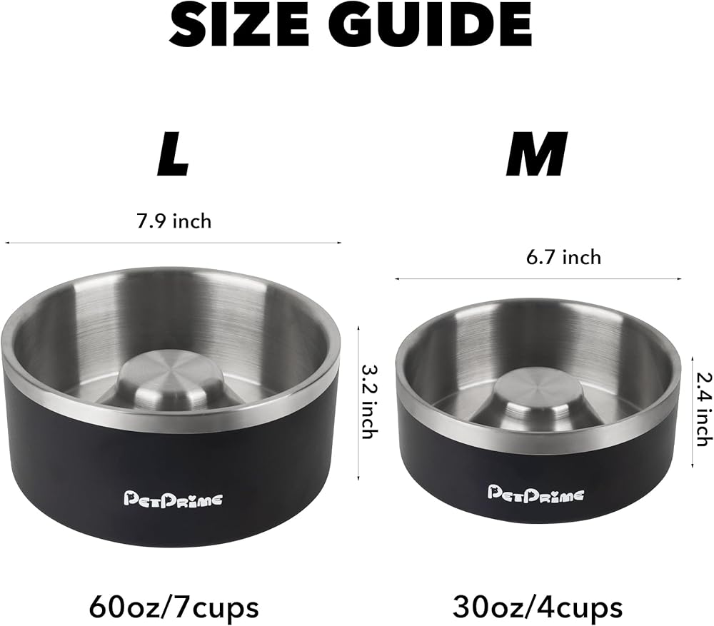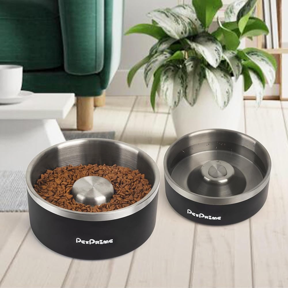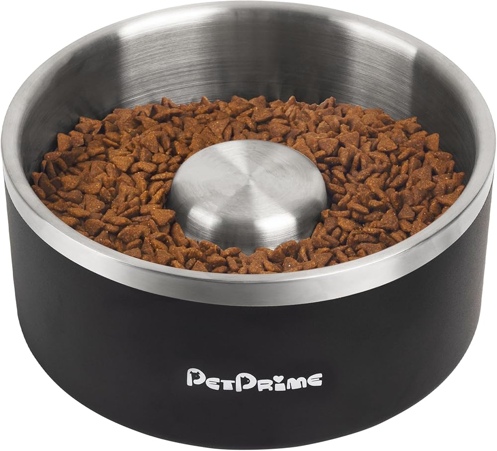 أوعية تغذية بطيئة من الفولاذ المقاوم للصدأ من بت برايم، مضادة للانزلاق ومضادة للانسكاب، معدنية بطيئة الأكل، وعاء مرجح للقطط، طبق مياه للحيوانات الأليفة، تغذية للكلاب الكبيرة والمتوسطة والصغيرة (30 أونصة/4 أكواب)