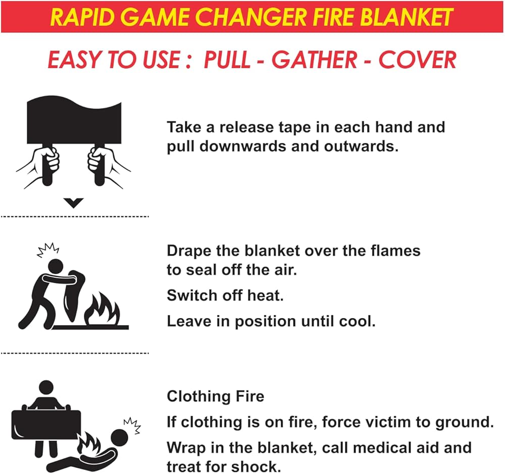 Easy to Use: Fire blanket is easy to use and can be quickly wrapped around objects or laid over a fire to smother the flames and prevent further spread of the fire.