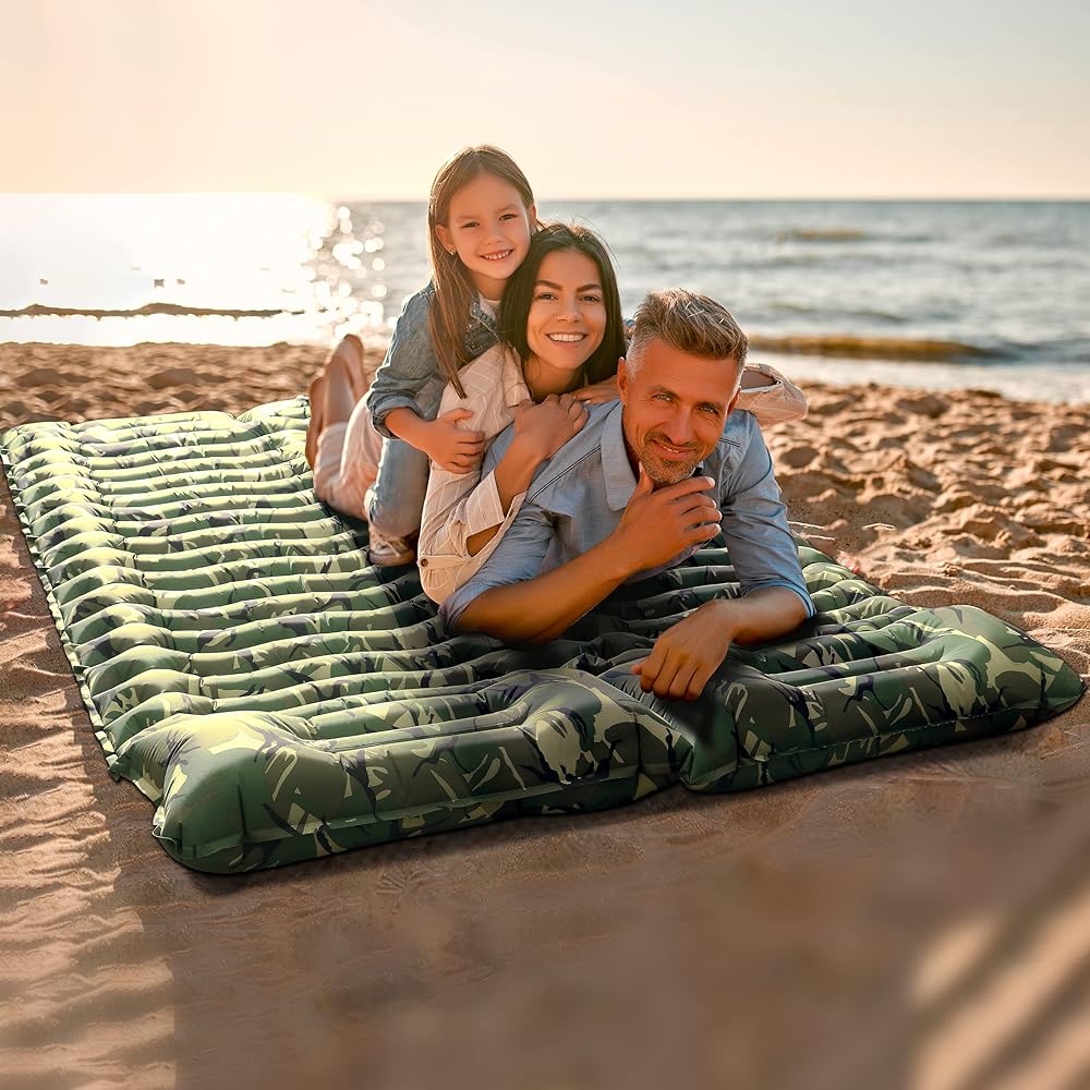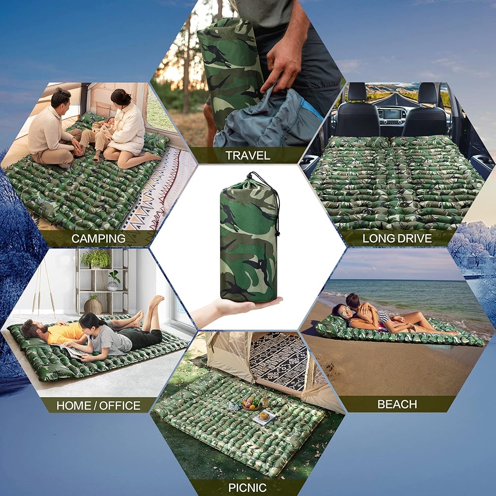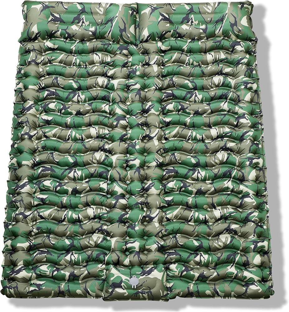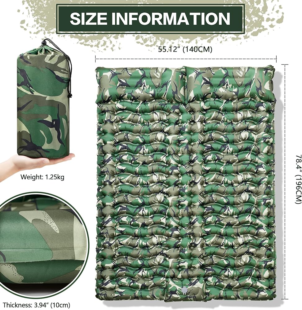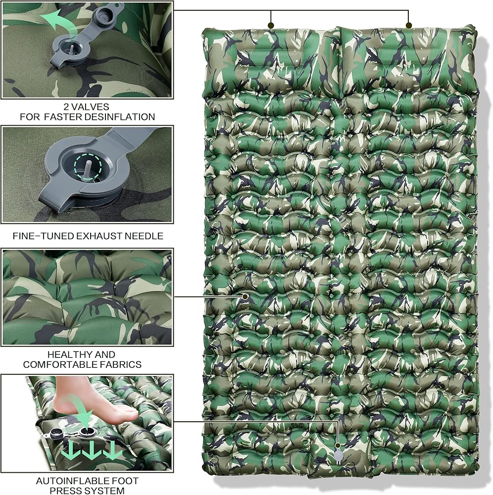 ثانكو 2 وسادة نوم مزدوجة بطبعة الجيش، وسادة نوم مموهة للتخييم لشخصين، وسادة نوم ذاتية النفخ، مرتبة هوائية للتخييم، وسادة تخييم قابلة للنفخ بضغط القدم