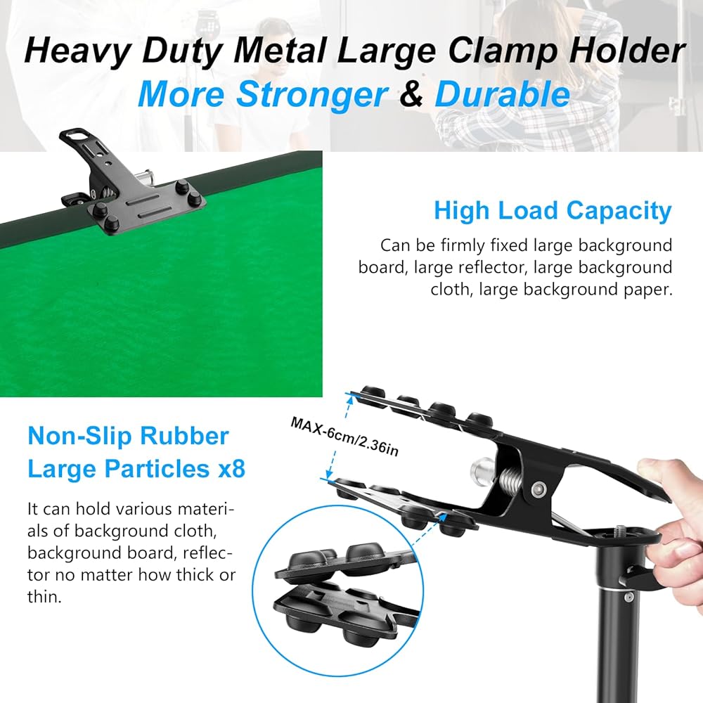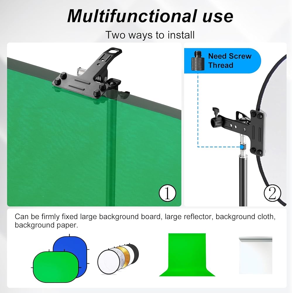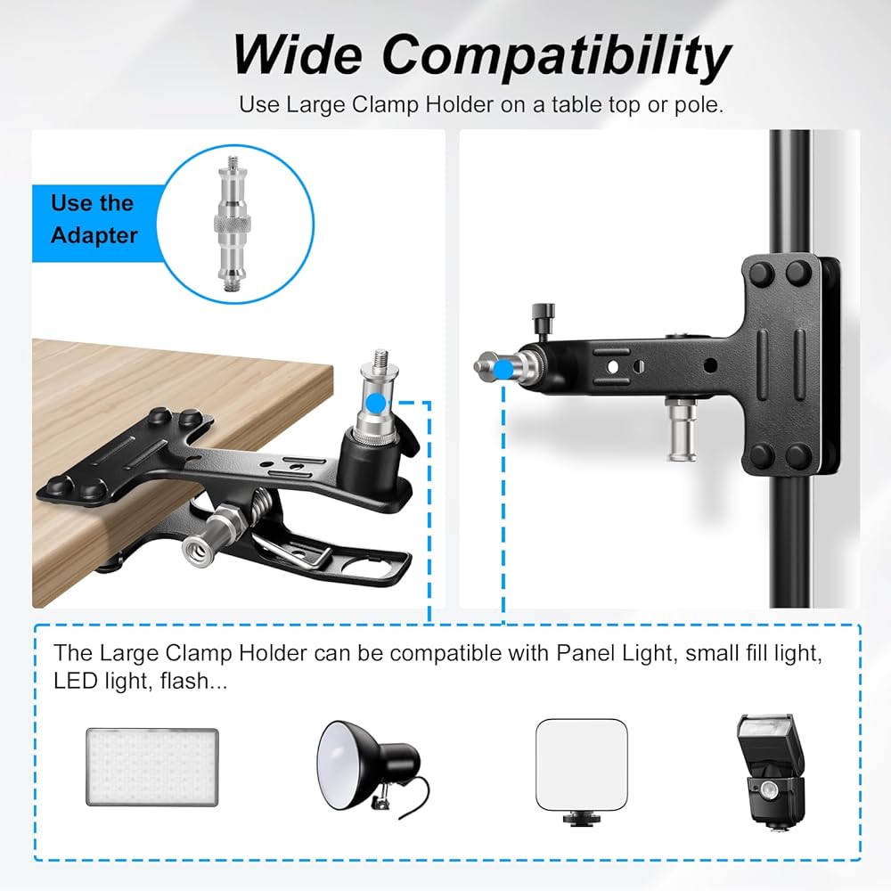 【Wide Application】The EMART heavy duty Large clip clap is versatile and can be used for various purposes such as holding background boards, folding green backgrounds, reflectors, background cloths, and background papers. Additionally, with the adapter connected, it can also accommodate GoPros, small fill lights, LED lights, flat lights, flashes, and monitors.
