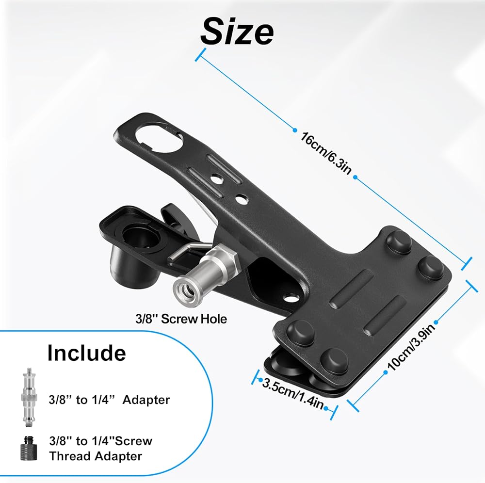 【3/8" to 1/4"Screw Thread Adapter】The kit includes a 3/8" to 1/4"Screw Thread Adapter which allows the Super clamp to be mounted on both 3/8" and 1/4" light stands,tripods,and monopods providing variable mounting options.