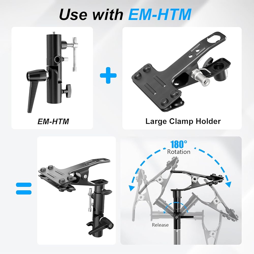 【Used with EM-HTM】It can be combined with an H Type Mount allowing the clip to be angled up to 180° creating more versatility in photography and studio scenes.