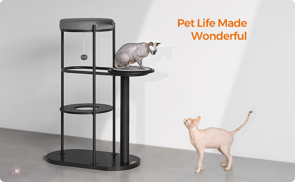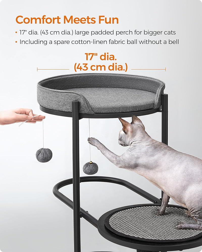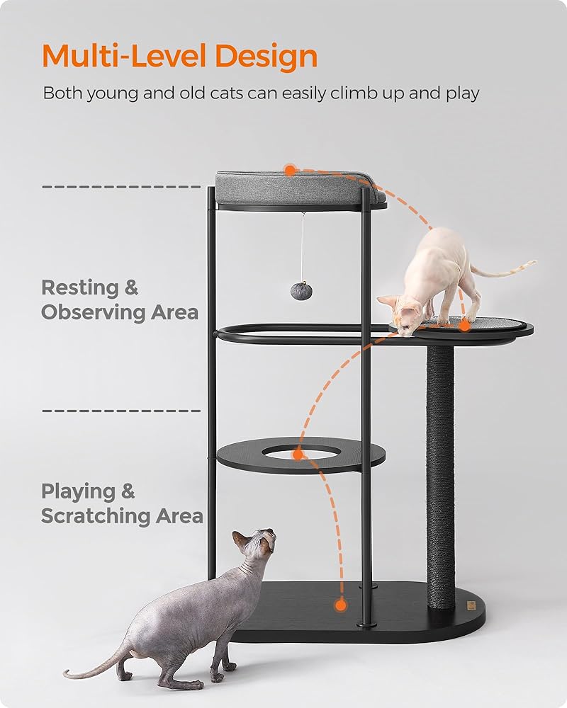 - ارتفاع مثالي: طول 44 انش للقطط التي تحب التسلق إلى المساحات العالية ومراقبة المنزل.