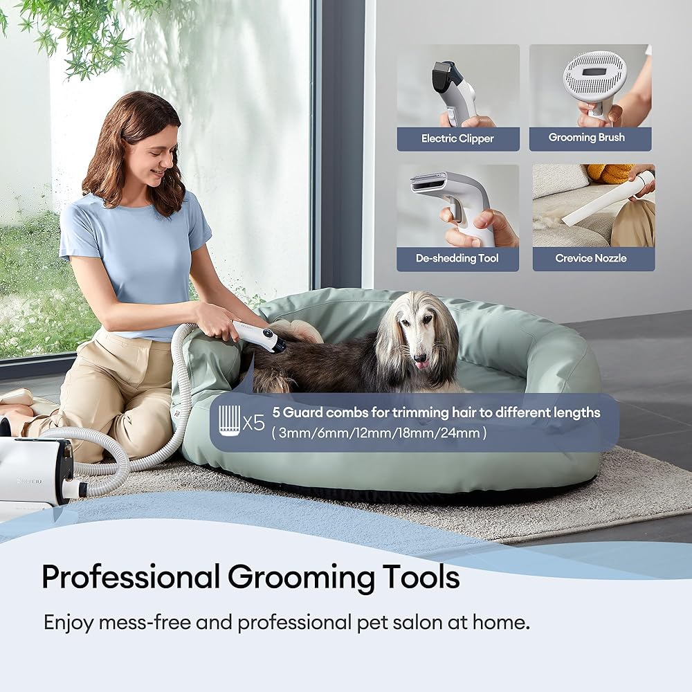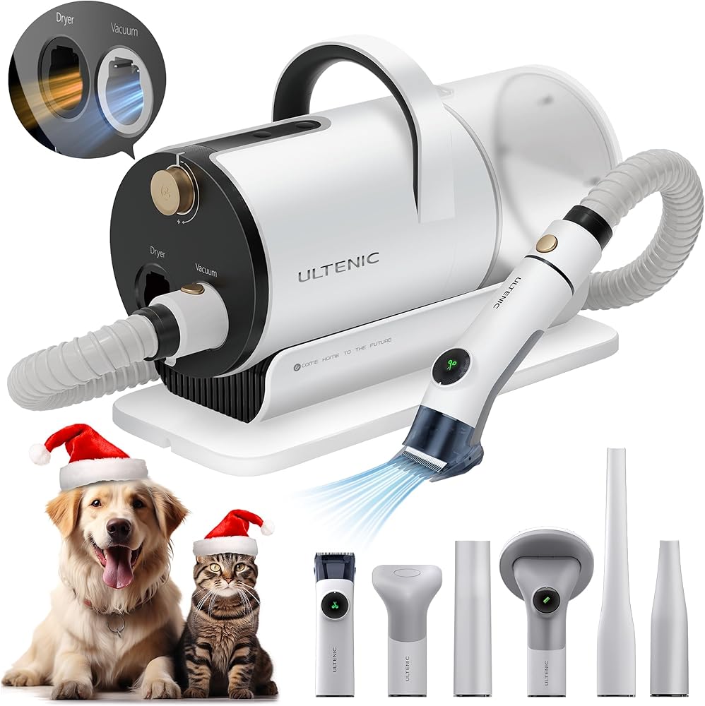 مكنسة ألتينيك للعناية بالكلاب ومجفف شعر الكل في واحد لتساقط الشعر، مجموعة أدوات للعناية بالحيوانات الأليفة 6 في 1 مع كوب غبار سعة 2 لتر، مناسبة للكلاب والقطط