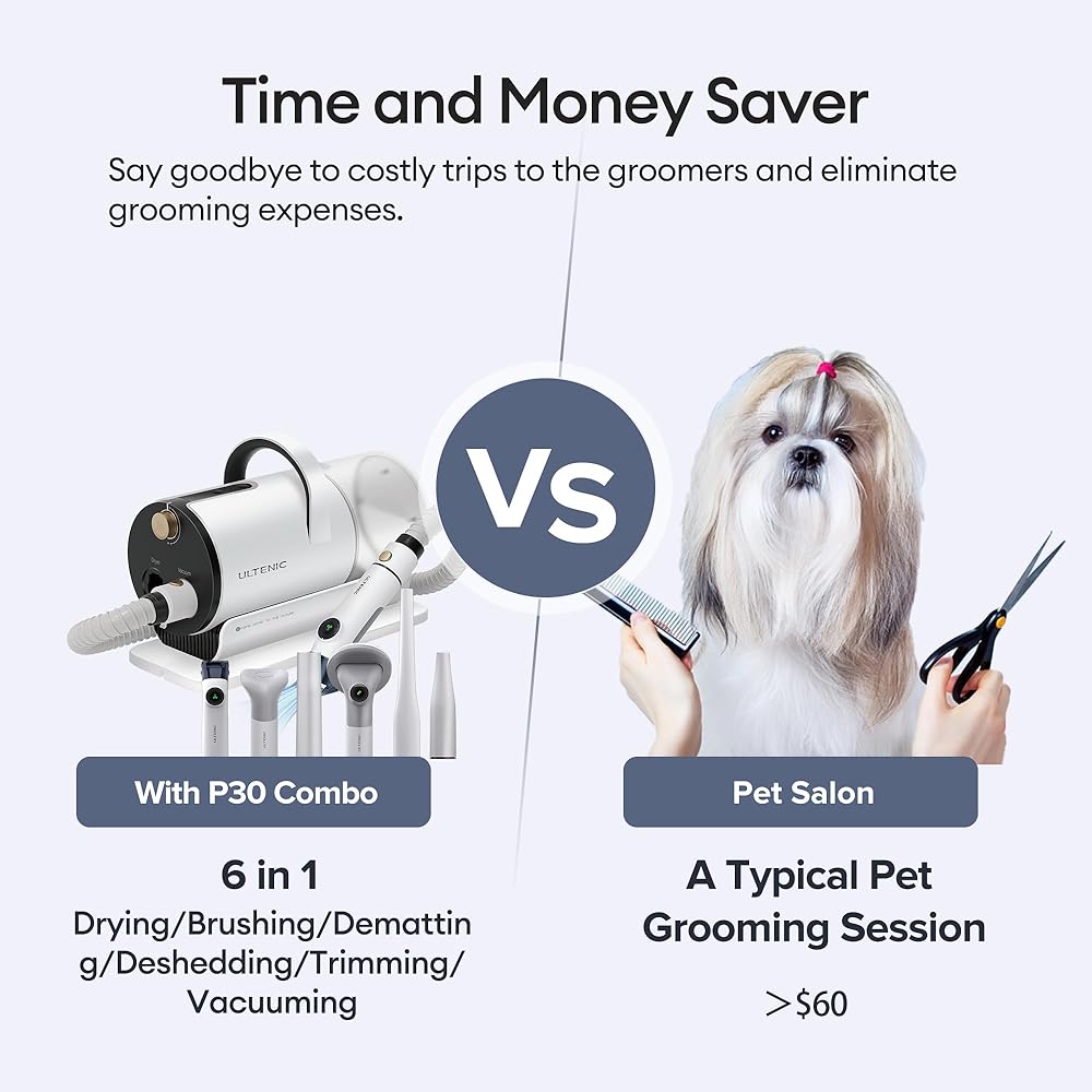 【تصميم صديق للحيوانات الأليفة مع مجفف شعر】أعط الأولوية لراحة حيوانك الأليف من خلال تصميم مجموعة Ultenic Pet Grooming Kit الصديق للحيوانات الأليفة، والمكتمل بمجفف شعر متكامل. تضمن عملية التشغيل منخفضة الضوضاء تجربة حلاقة خالية من التوتر، كما يسمح التصميم المريح بقبضة آمنة، مما يسهل عملية الحلاقة بسهولة ودقة. تضمن وظيفة مجفف الشعر الإضافية عملية تجفيف سريعة ومريحة بعد التصفيف، مما يحافظ على محتوى حيوانك الأليف ومظهره الرائع.
