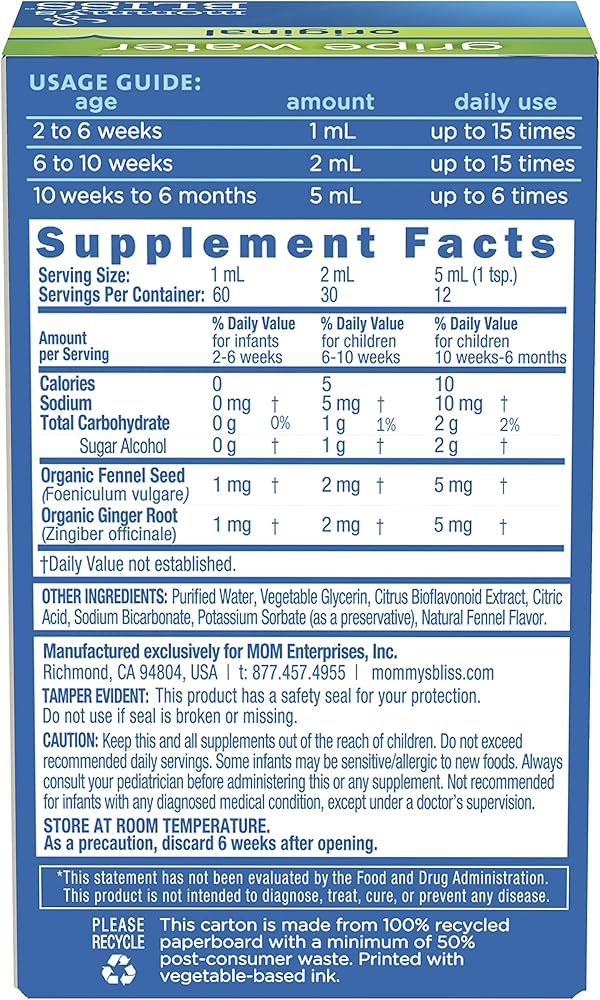 Mommy's Bliss Original Gripe Water، تخفيف الغازات والمغص، لطيف وآمن، مصنوع للرضع، من عمر أسبوعين فما فوق، 2 أونصة سائلة (4 عبوات)