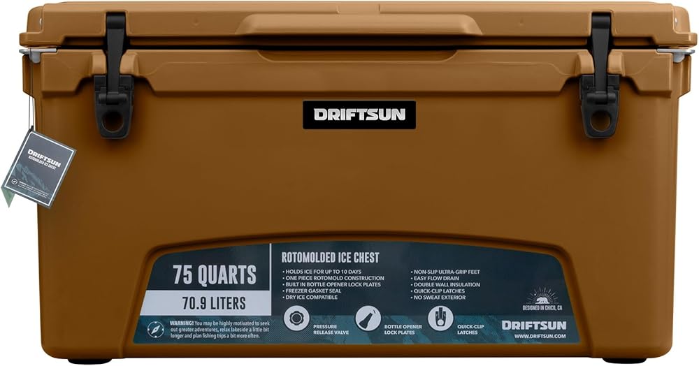 SERIOUSLY COLD: The 75 Quart Driftsun Cooler has 3 inches of commercial grade insulation. The molded freezer rubber gasket keeps your water jug, lunch bag, or food items colder for longer!