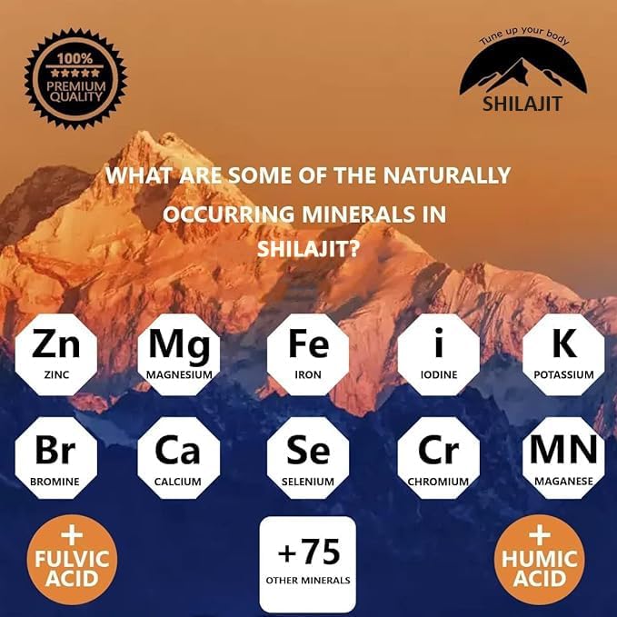 Unlock the potential of shilajit with our specialized shilajit resin, enriched with over 85 trace minerals and naturally-occurring fulvic acid and humic acid.