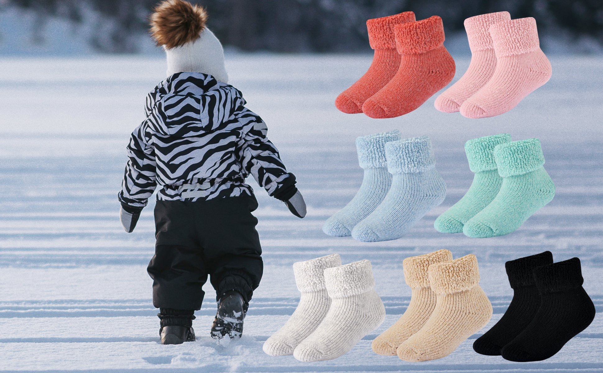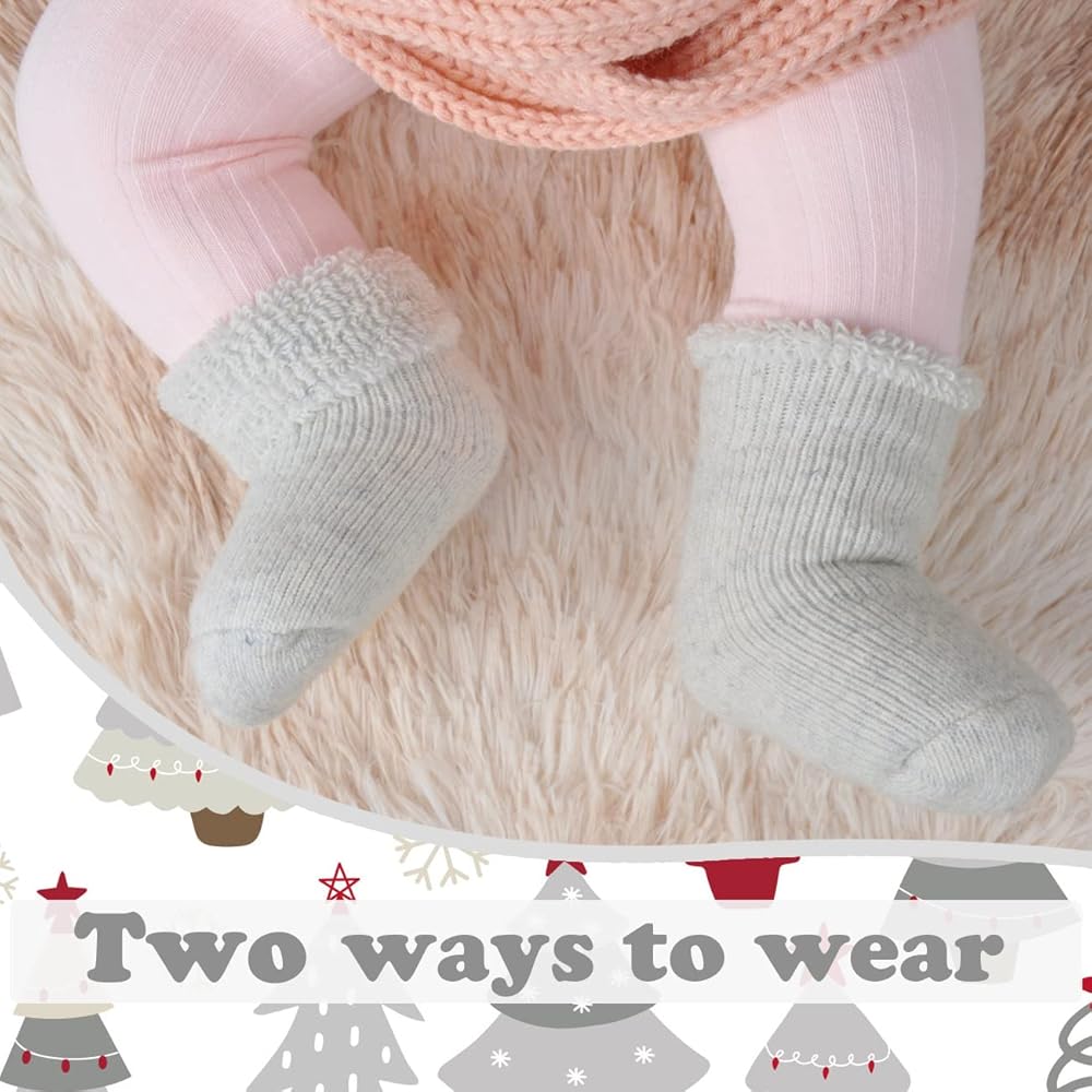 =دافئ دافئ= غطاء وبري فائق النعومة للجورب بالكامل، الجزء الداخلي سميك ودافئ يحافظ على دفء قدم الطفل في المواسم الباردة. كما أن أساور الجوارب الصوفية للأطفال الصغار قابلة للتمدد للغاية، فلا داعي للقلق بشأن ترك علامات على كاحلي طفلك السمين.