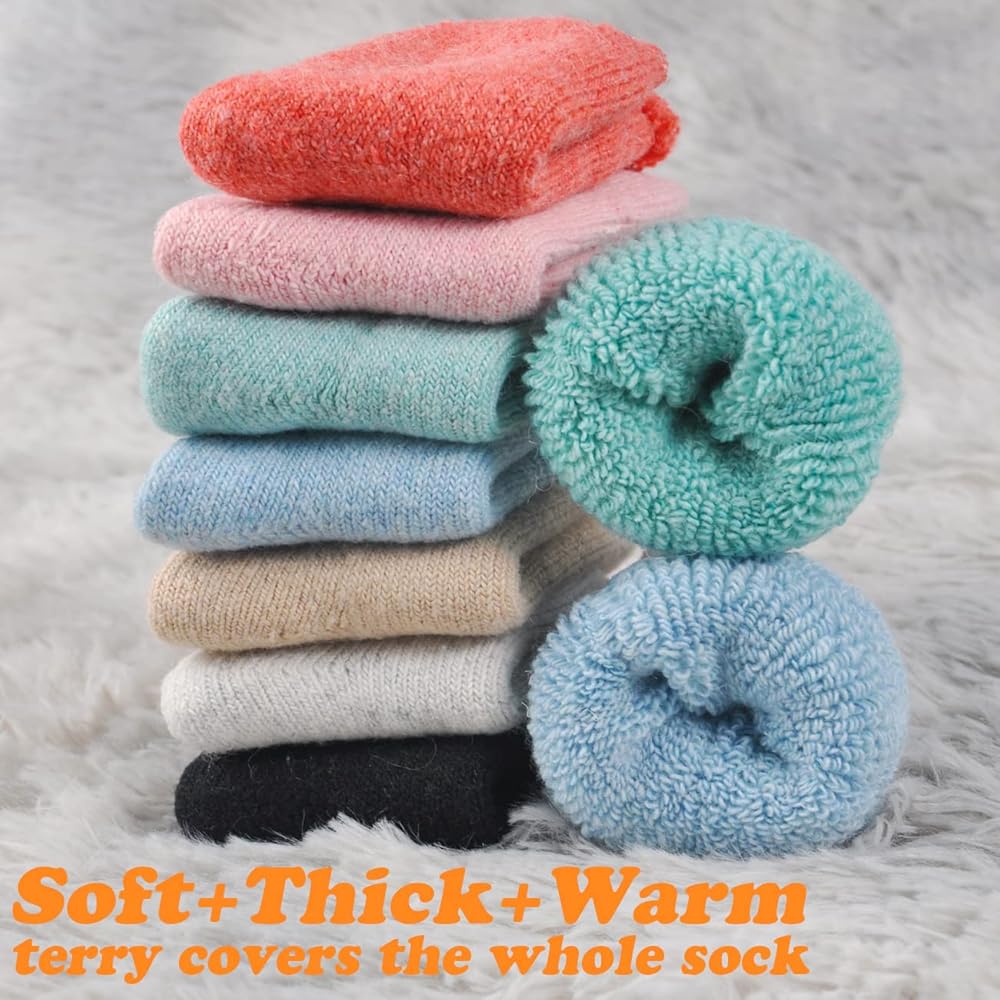 =خامة عالية الجودة= جوارب الأطفال الصوفية الخاصة بنا مصنوعة من 25% صوف، و50% بوليستر، و15% ألياف لدنة، و10% قطن. ناعم ومريح وممتص للعرق وجيد التهوية. تحافظ جوارب الشتاء السميكة على دفء طفلك طوال اليوم، ومناسبة للطقس البارد.