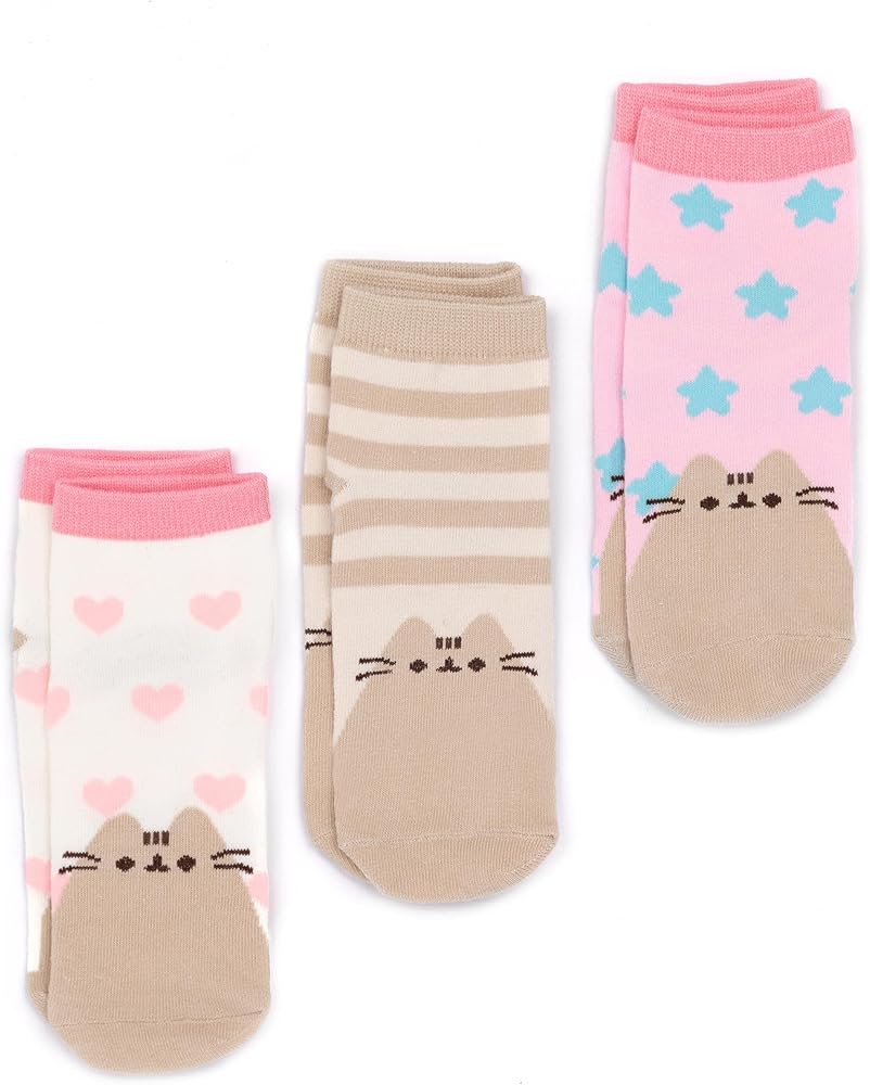 4 أزواج من جوارب PUSHEEN للفتيات - حافظي على دفء أصابع قدميك ودافئة مع مجموعة جوارب Pusheen المتنوعة الرائعة المكونة من 3 قطع والتي تأتي باللون الوردي والرمادي. هذه المجموعة هي هدية سهلة الاستخدام لحشو جوارب عيد الميلاد!