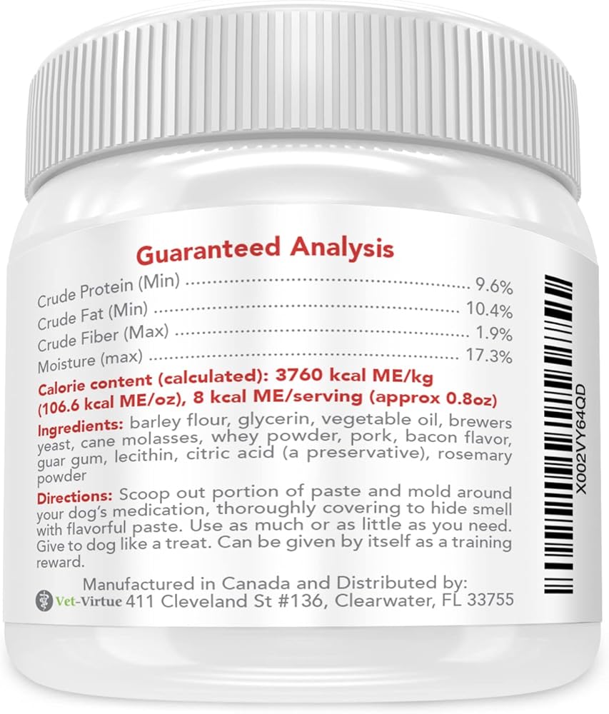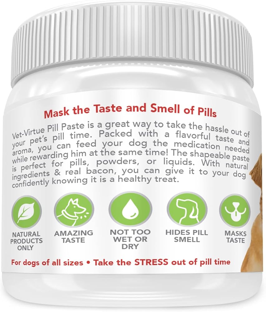 • منتجات Vet-Virtue عالية الجودة - نحن ندعم منتجاتنا ونعدك بأنك وكلبك ستحبونها وإلا سنعيدها دون طرح أي أسئلة. يعتبر معجون الأقراص هذا مثاليًا للكلاب التي يصعب إرضاؤها والتي تتردد في تناول أدويتها.
