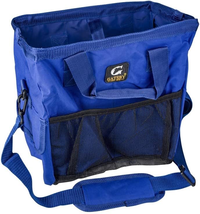 Gatsby(R) Nylon Grooming Tote Bag with Mesh Bottom Keep all your grooming essentials organized, clean, and at hand with this convenient grooming tote! The mesh bottom allows small dirt and debris to fall through, keeping your tools neat and tidy! Made of 600 denier material, it has a wire-framed top which makes accessing the contents even easier. Multiple inside pockets keeps your brushes and tools well organized and easily at hand. Features exterior mesh pockets and flapped end pockets perfect for smaller items, plus a removeable padded shoulder strap. 12" x 12" x 7". Features: Made of 600D nylon Wire framed top Multiple pockets Removable padded shoulder strap Gatsby(R) Your Horse, Our Purpose. Founded in 1979, Gatsby(R) is one of the industry's most recognizable and credible equestrian brands. They are founded on the belief that the more time you spend with your horse, the better - that's why the products designed by Gatsby(R) make sense for the barn and for your budget.
