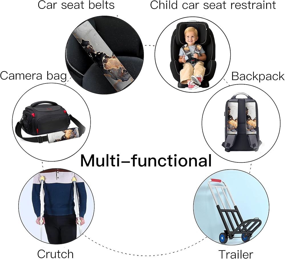 لا تقتصر وسائد الكتف هذه على أحزمة الأمان فقط. حجمها العالمي يجعلها متعددة الاستخدامات ومتعددة الوظائف. مثالية لمقاعد السيارة للأطفال أو حقائب الظهر أو حقائب اللاب توب أو أي عناصر بها أحزمة. سواء كنت في سيارة أو شاحنة أو سيارات الدفع الرباعي أو الطائرة أو الحافلة أو القطار، فإن هذه الوسائد توفر توسيدًا فائقًا وتحمي كتفيك ورقبتك من الاحتكاك أو التآكل.