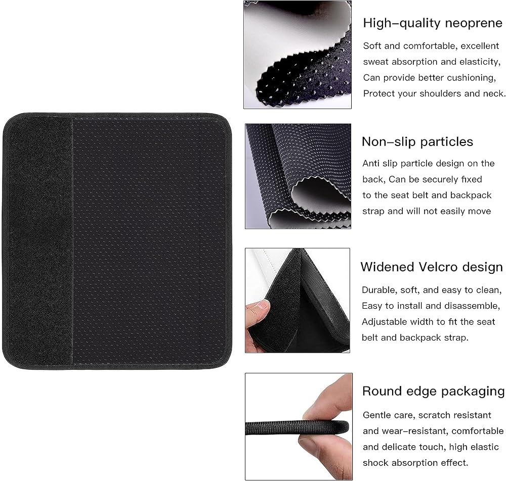 يسمح تصميم الشريط السحري الواسع بالتركيب السريع والسهل. يمكنك بسهولة ضبط العرض ليناسب أي حزام أمان أو حزام حقيبة ظهر، مما يوفر ملاءمة مخصصة وآمنة. توفر الحواف الدائرية المتينة والمقاومة للخدش لمسة ناعمة ورقيقة، مما يعزز راحتك.