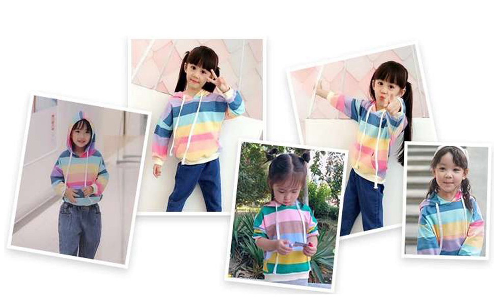 ما الذي تحصل عليه - 1x سويت شيرت بقلنسوة بألوان قوس قزح للفتيات الصغيرات، يمكن غسله يدويًا وفي الغسالة، ويوصى بالغسيل اليدوي.