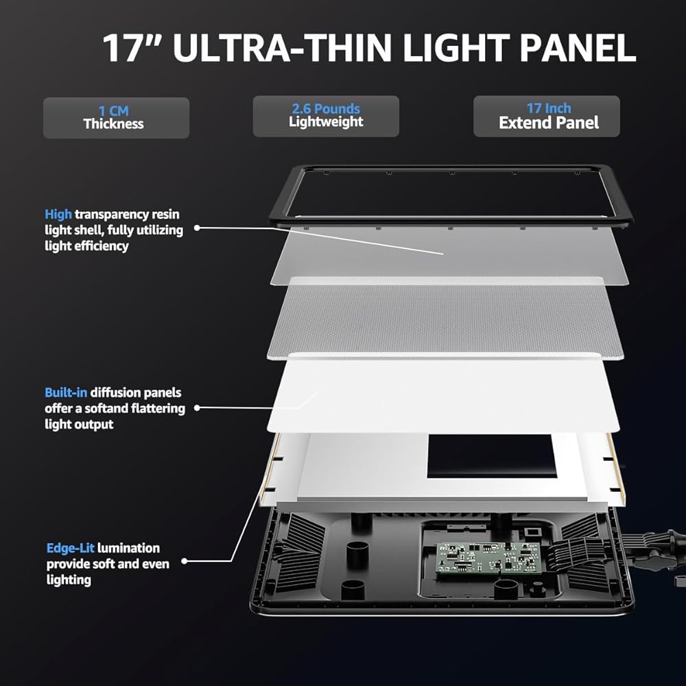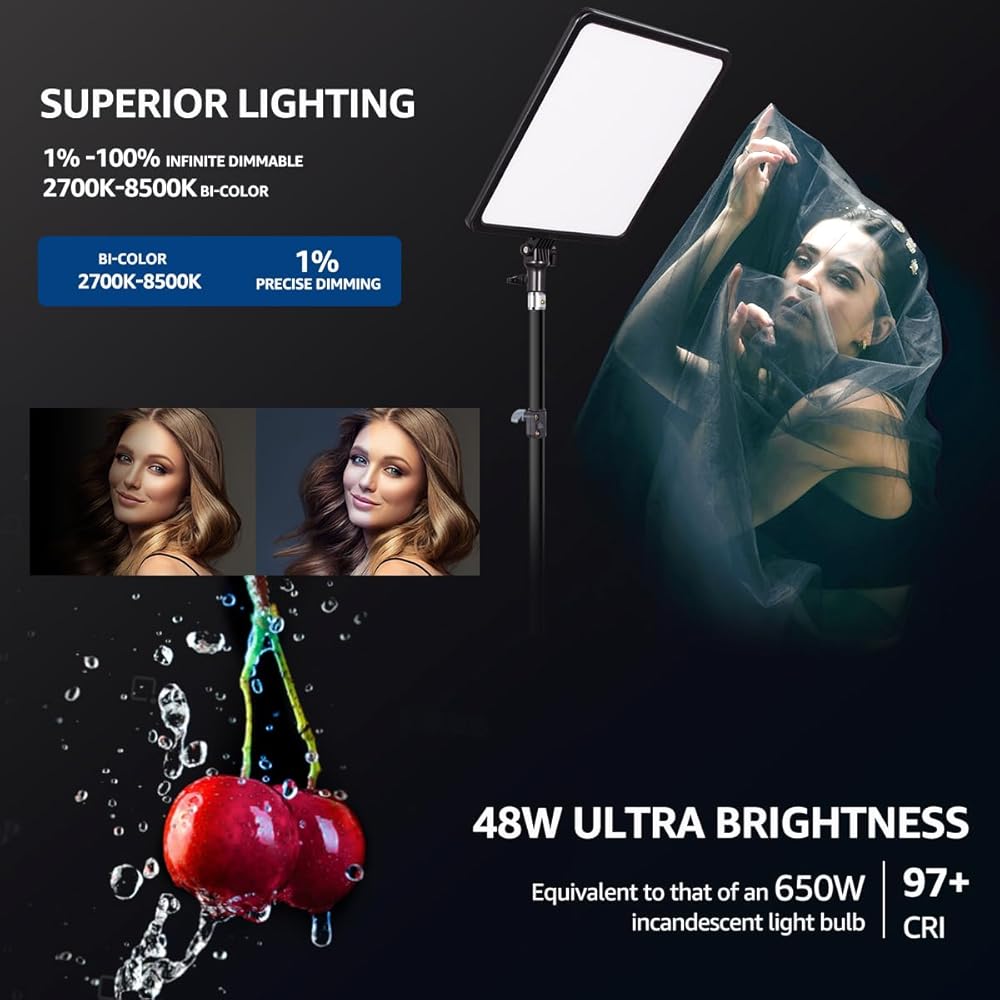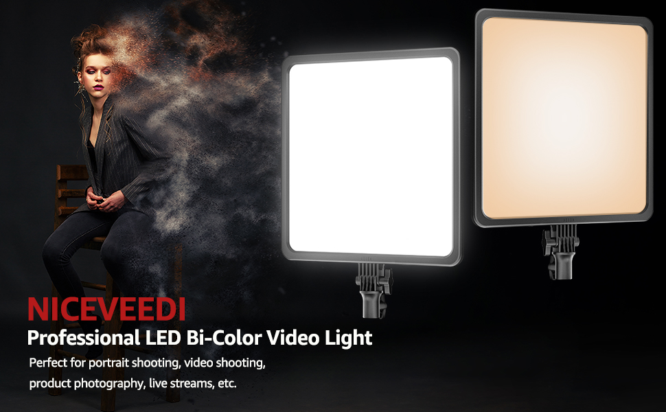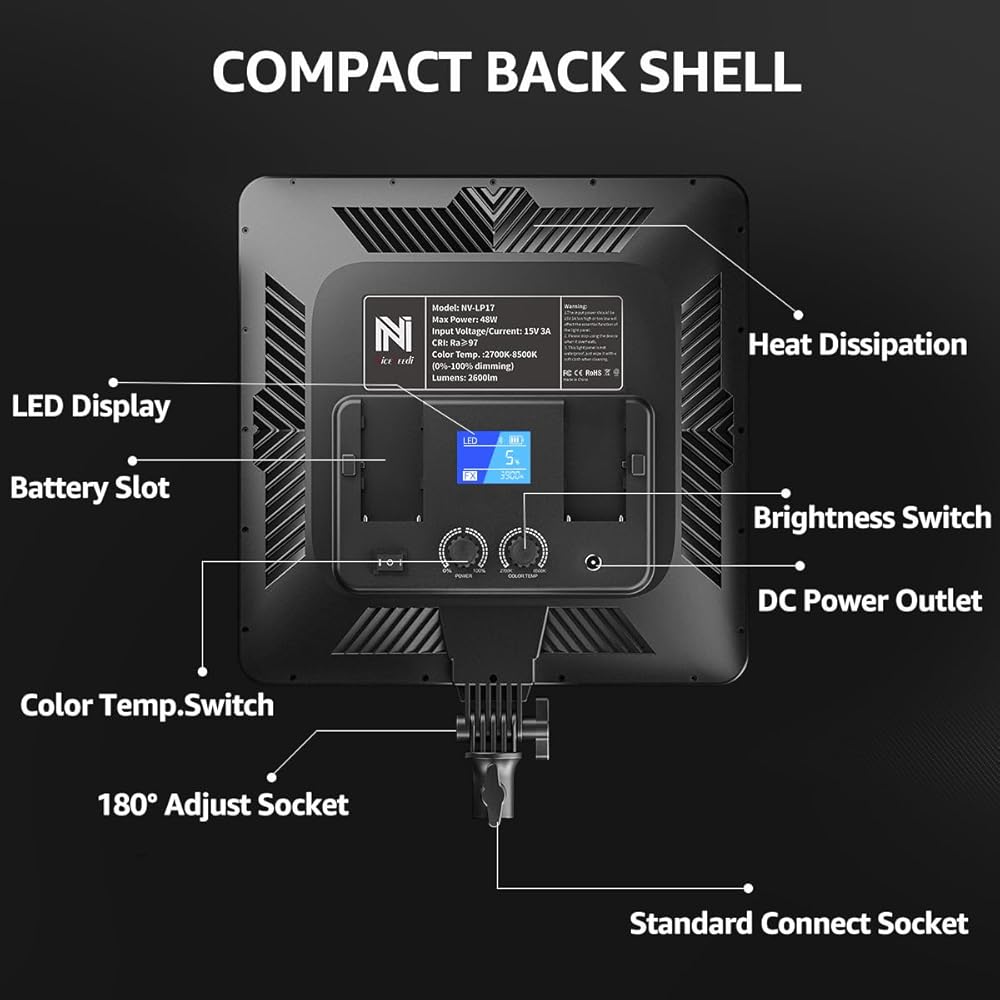 مصباح فيديو مقاس 17 بوصة، مصباح تصوير LED ثنائي اللون من NiceVeedi 48 وات 2700-8500 كلفن مع جهاز تحكم عن بعد، 1% -100% قابل للتعتيم لا نهائي CRI 97+ ضوء استوديو احترافي للاستوديو، ضوء تصوير فيديو يوتيوب