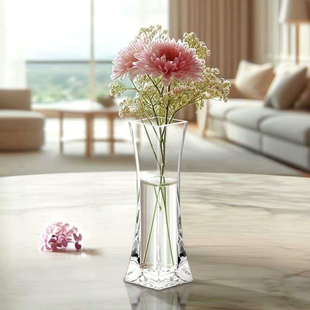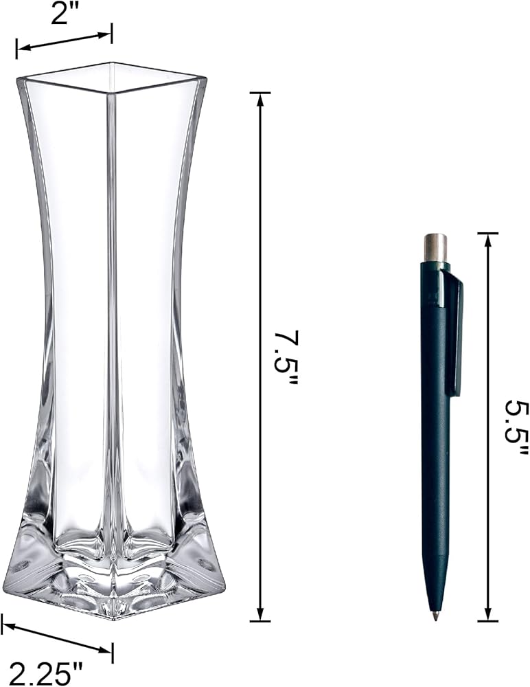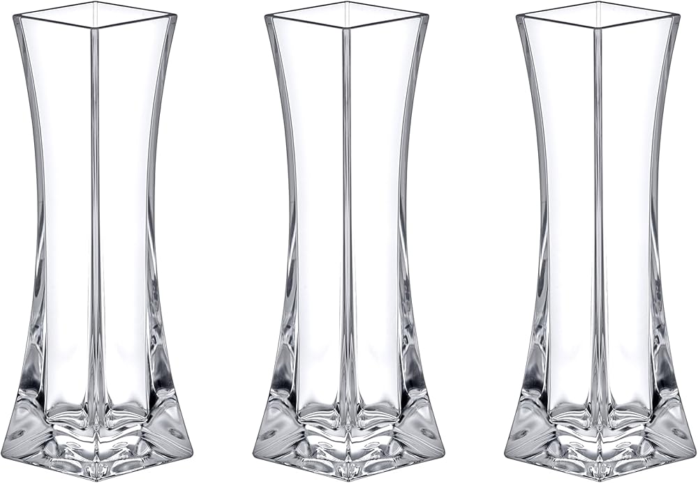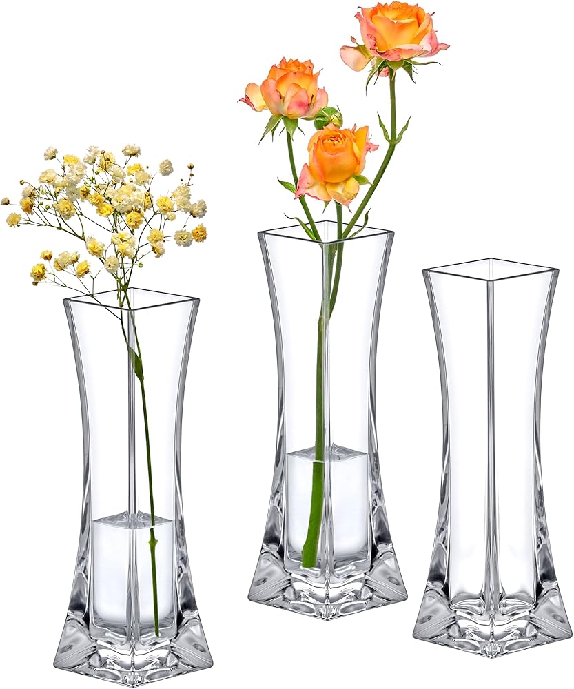 Amazing Abby - مزهرية فيرونيكا - 3 مزهريات براعم أكريليك، مزهريات زهور بلاستيكية لقطع الزفاف المركزية، ديكورات المنزل، زخارف المكتب، مقاومة للكسر، 8 بوصات (ارتفاع)، مربع